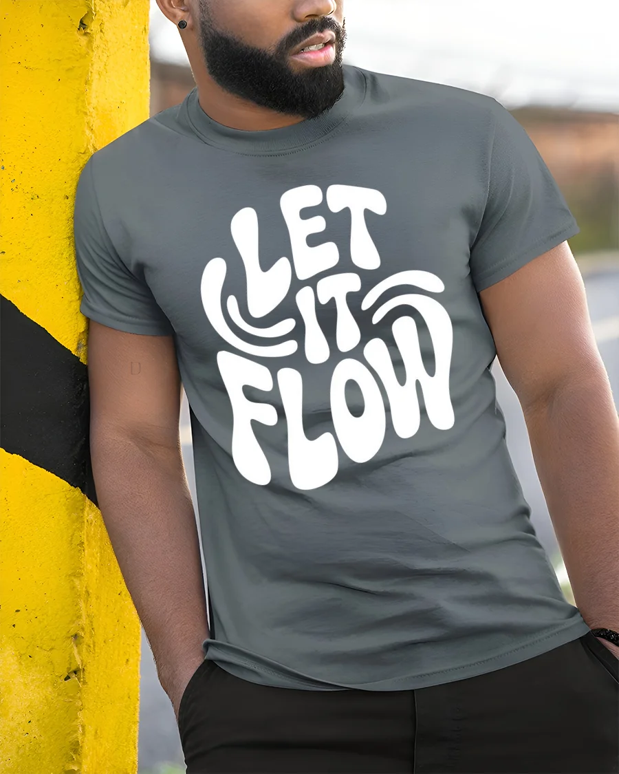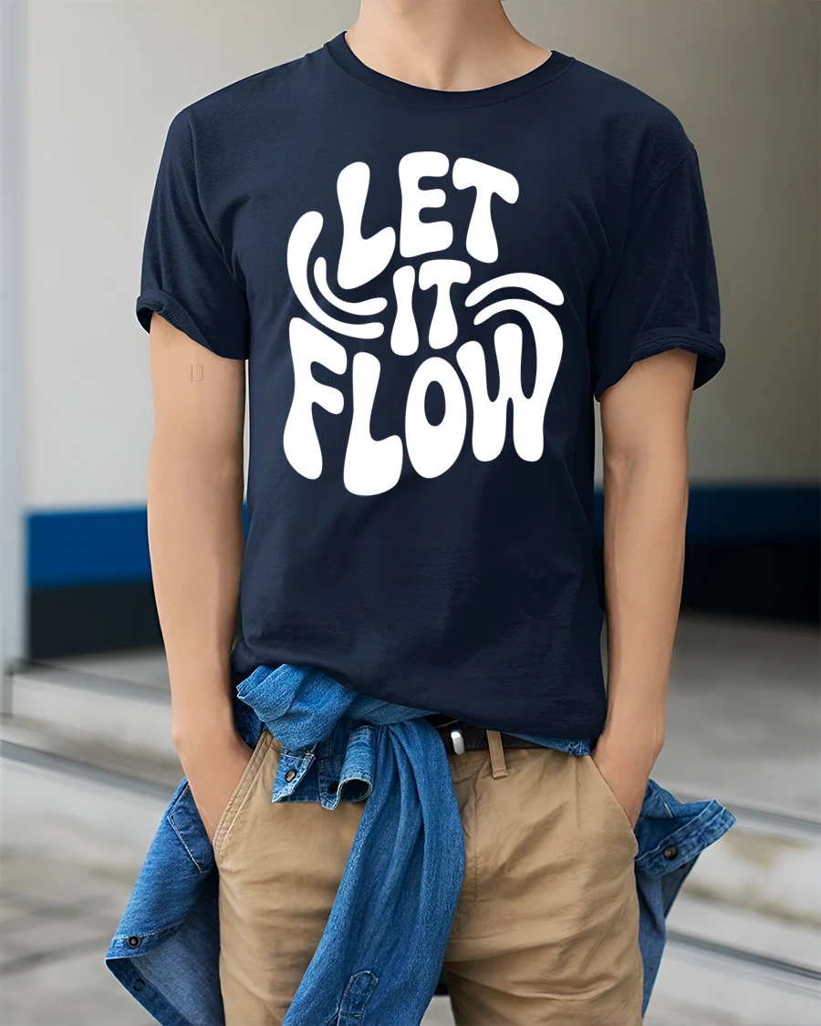 Let It Flow Positive Vibes Retro Typography Graphic T Shirt delivers a simple yet powerful message wrapped in a bold and stylish design.