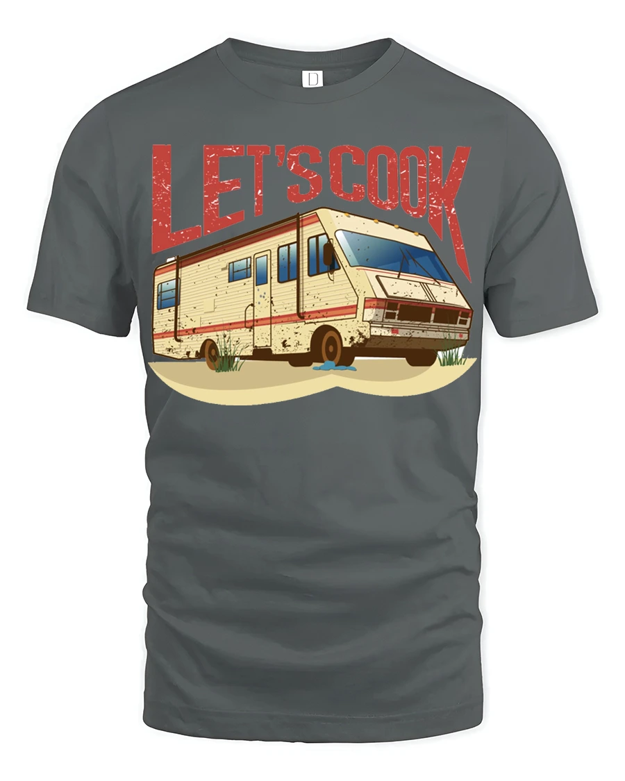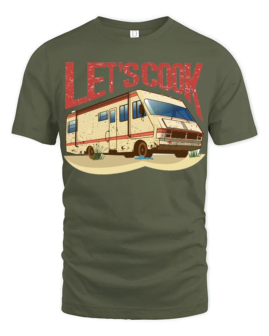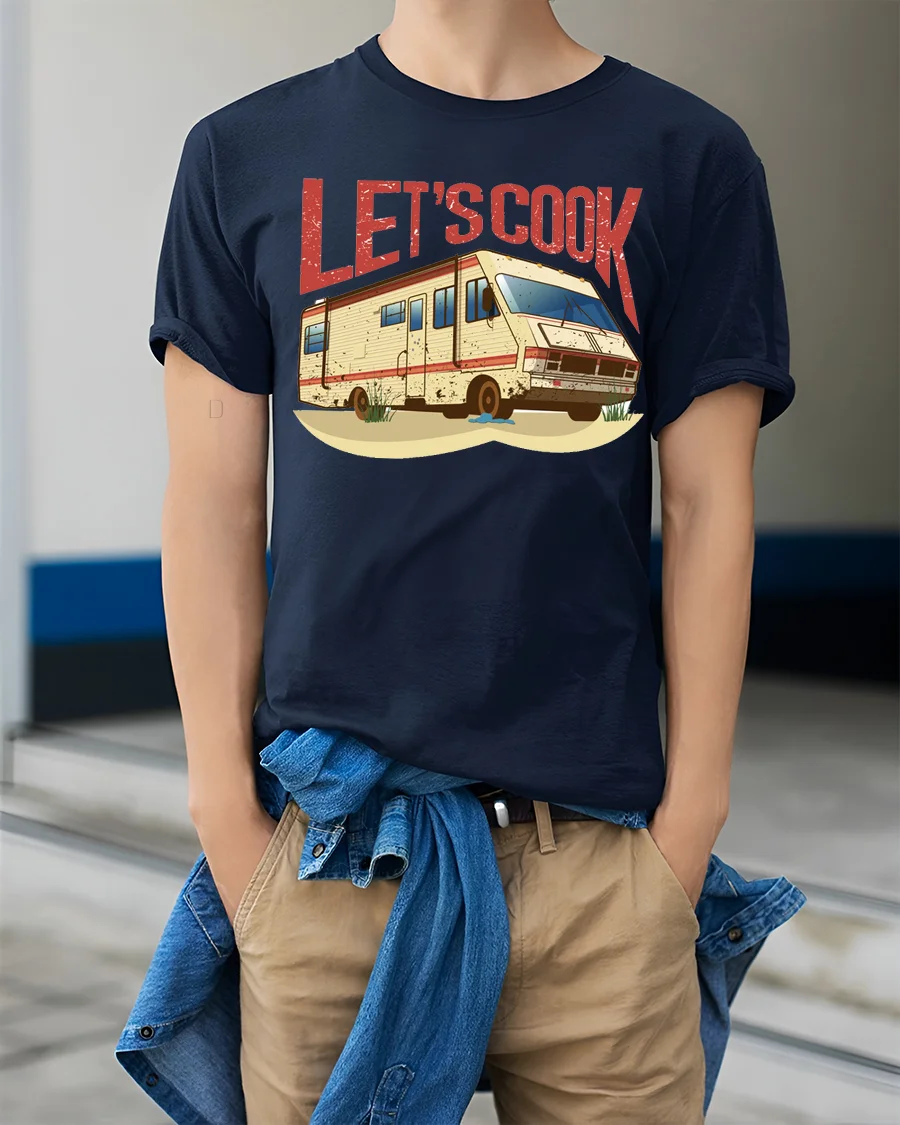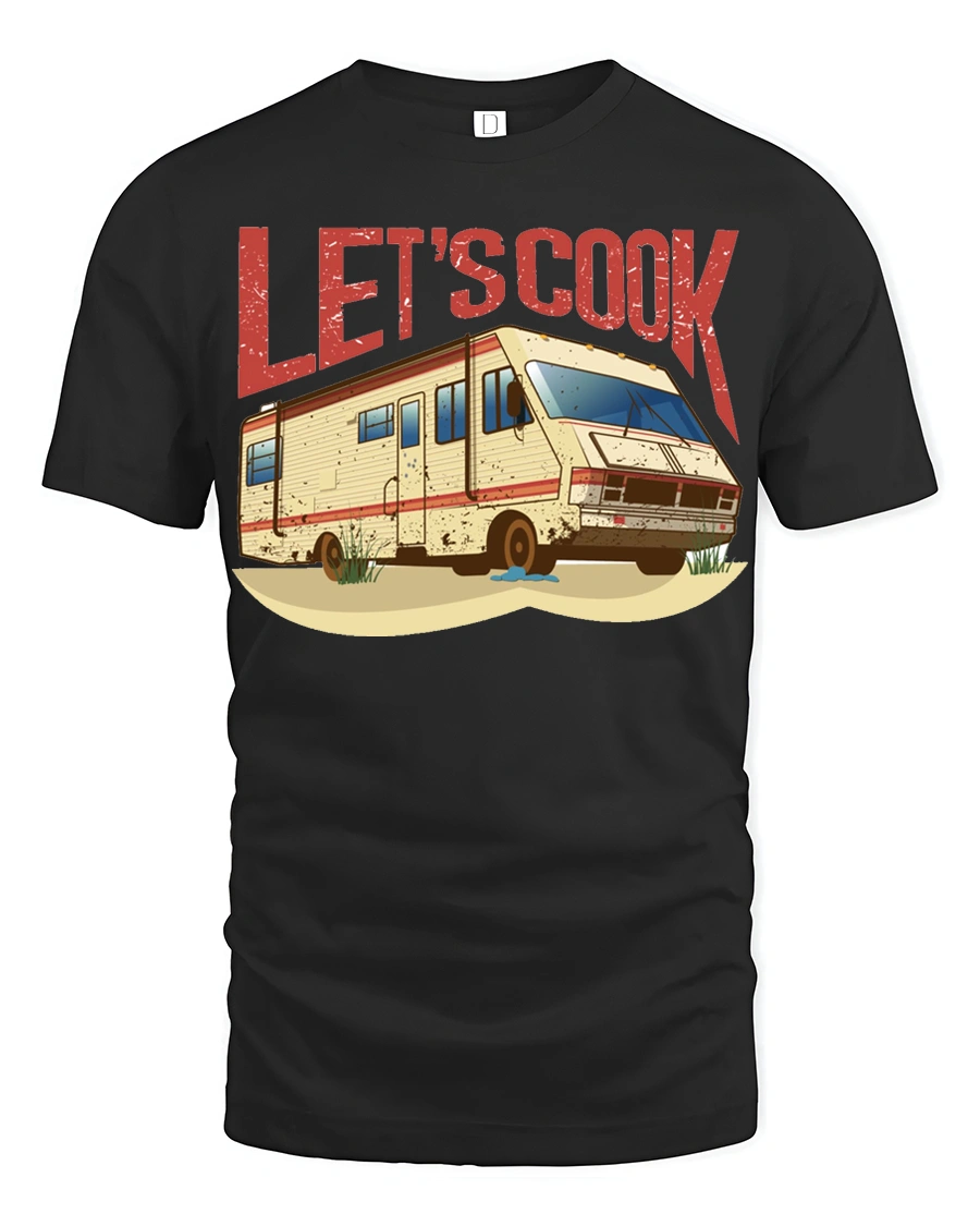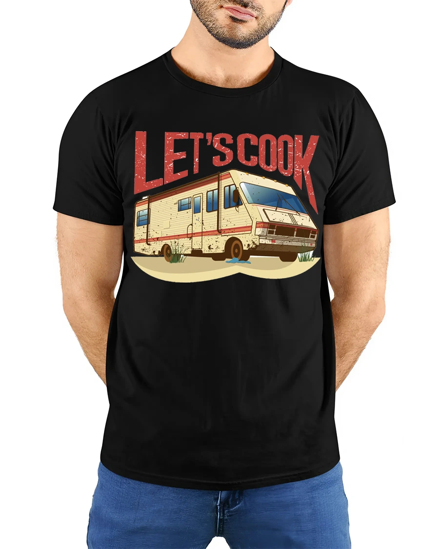 Lets Cook RV Camper Graphic T Shirt Funny Vintage Road Trip Style brings humor and retro vibes together in a bold and eye catching design.