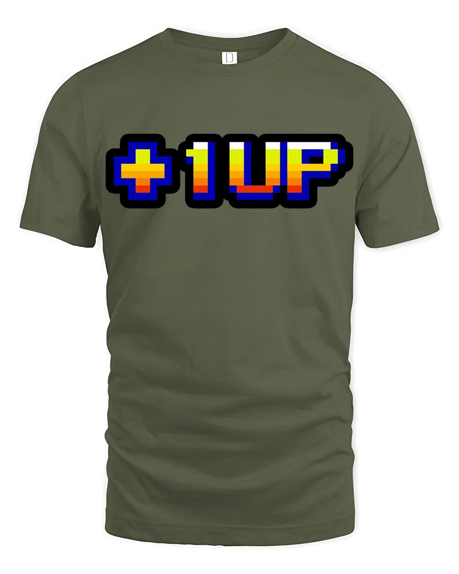 Level Up Gamer Pixel Retro Arcade Graphic T Shirt - military green t-shirt on white background