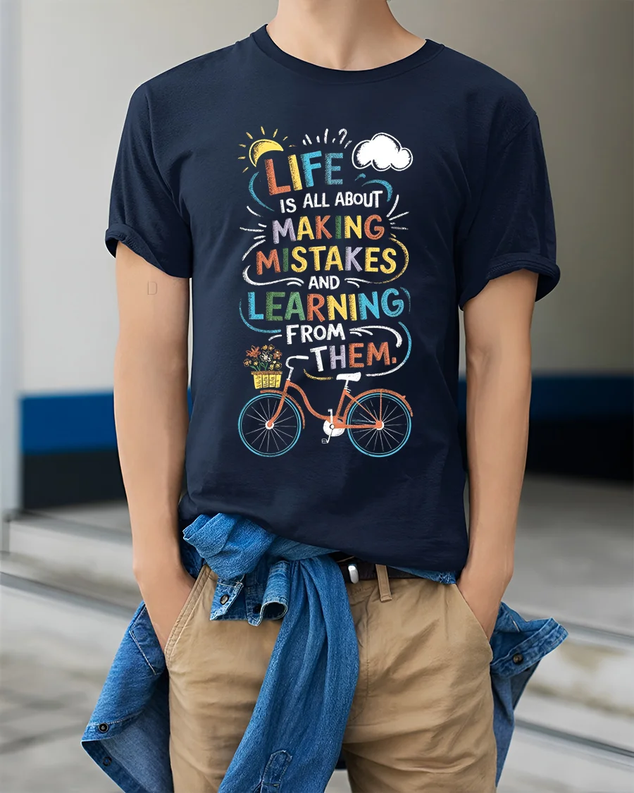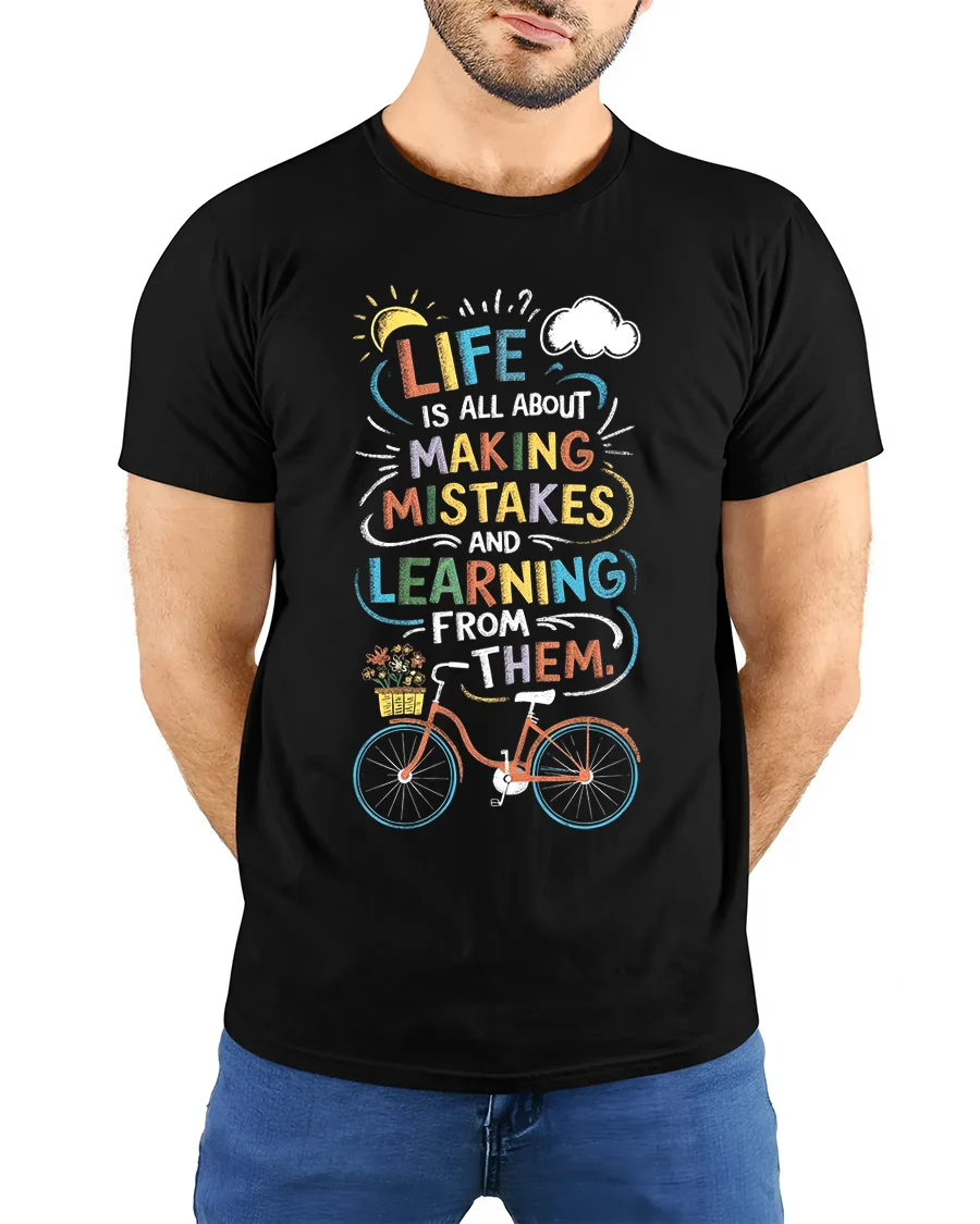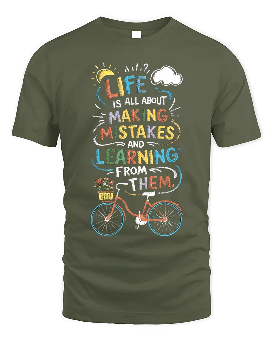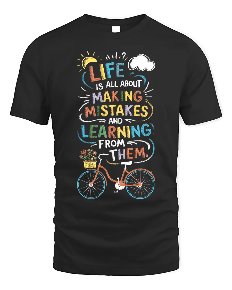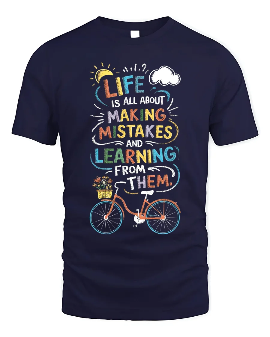 SKU: IMPD0310a8 Category: Hobbies Tags: bicycle graphic, casual t-shirt, chalkboard style, comfortable shirt, daily inspiration, gift idea, growth mindset, inspirational t-shirt, learning from mistakes, Life is about mistakes, life lessons, motivational tee, personal growth, positive quote, soft cotton, student gift, teacher gift, unique design, unisex t-shirt., uplifting tee