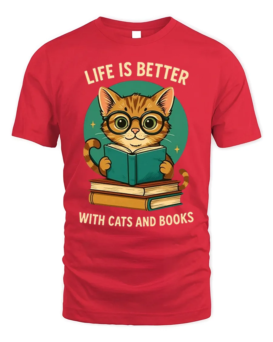 The Life Is Better With Cats And Books T-Shirt also makes a thoughtful gift for friends, family, or anyone who enjoys cuddling with their cats while diving into a good story. Perfect for birthdays, holidays, or special occasions, this tee is both stylish and meaningful. Show your love for cats and books with a shirt that speaks to your personality and lifestyle.