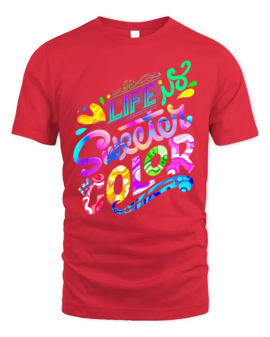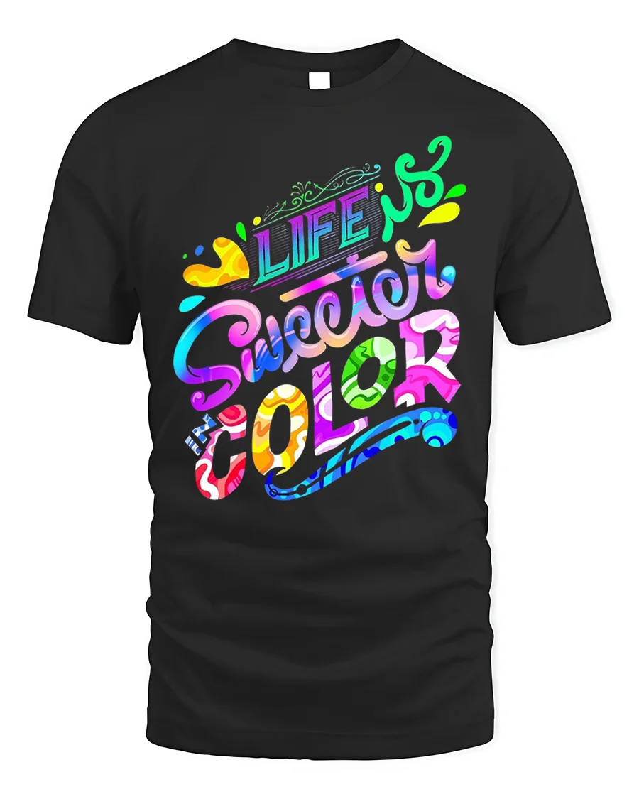 Celebrate positivity and creativity with the Life Is Sweeter In Color Vibrant Typography T-Shirt. This stunning tee bursts with bright, playful lettering and a rainbow-inspired palette that captures joy, optimism, and artistic expression all in one design.