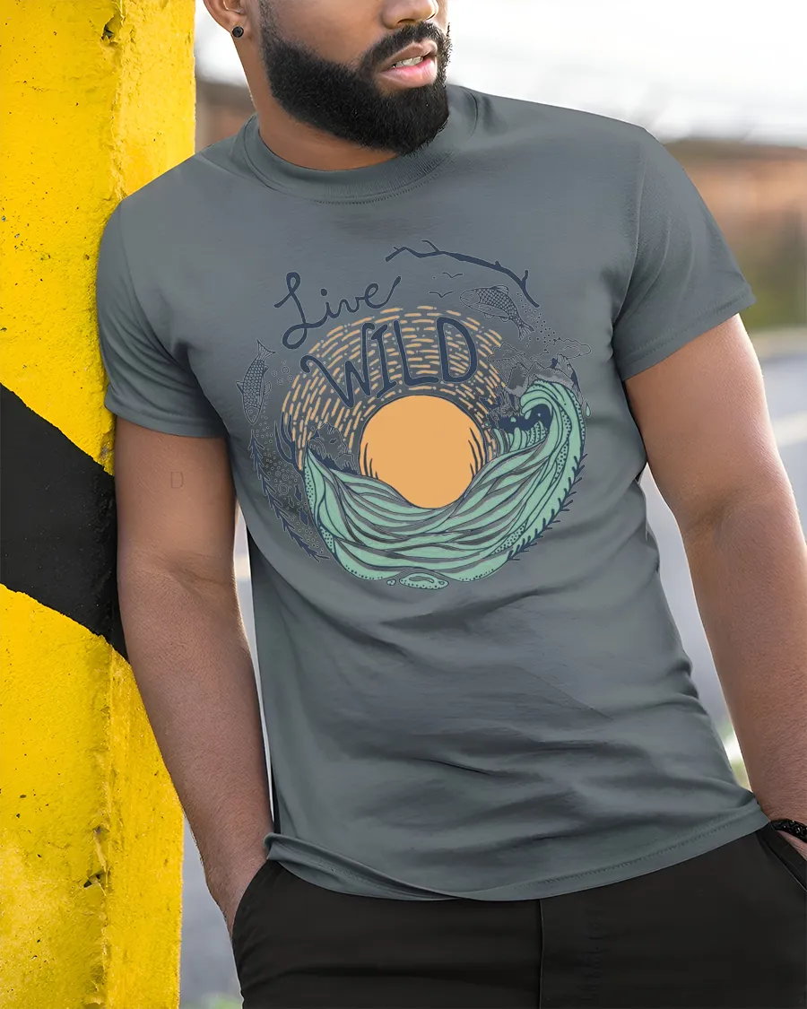 Live Wild Ocean Wave Nature Adventure Artistic Graphic Tee expresses the beauty of freedom exploration and connection with the natural world through a visually inspiring design.