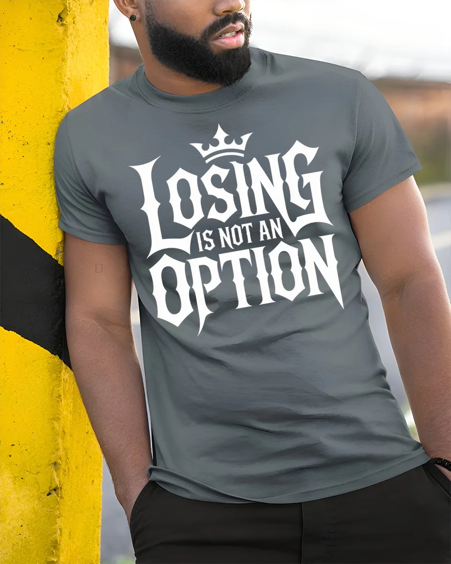 Losing Is Not An Option Motivational Bold Typography T Shirt brings a powerful message to your everyday style.