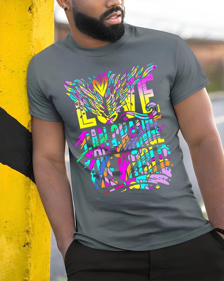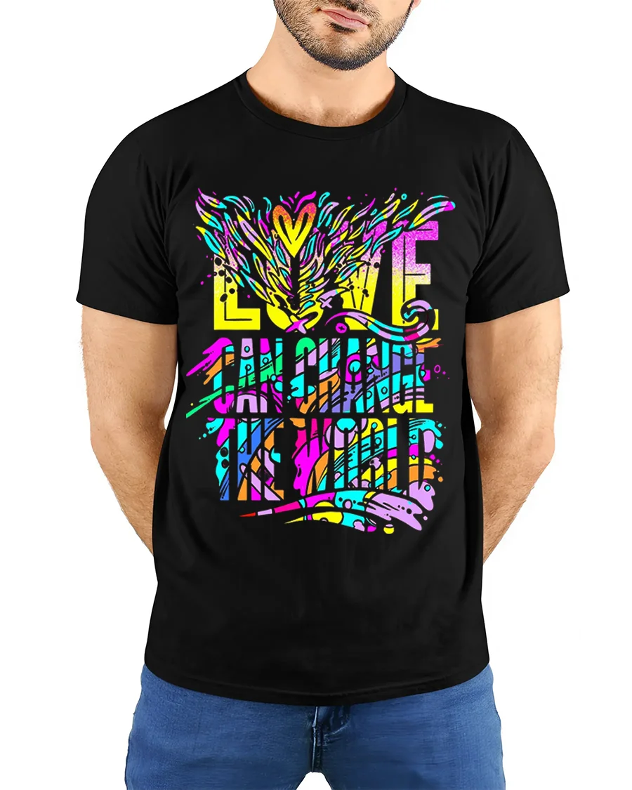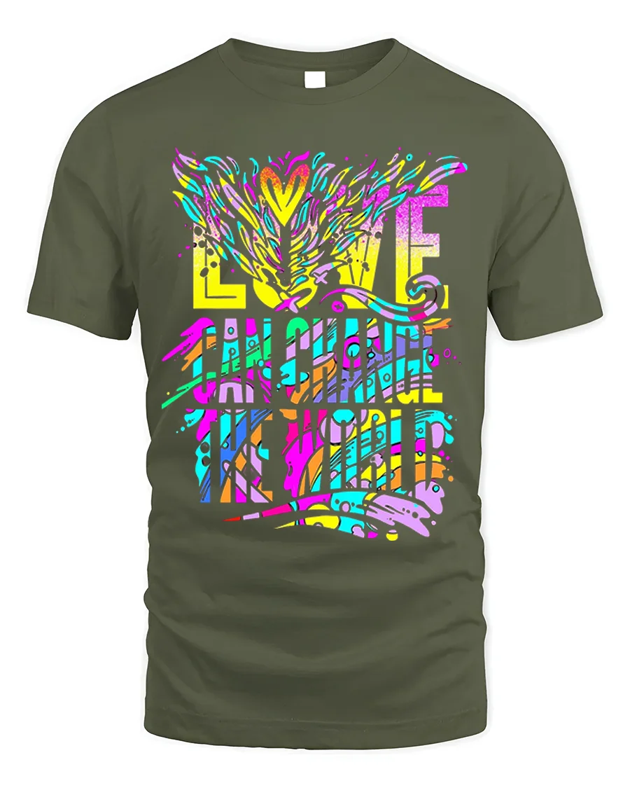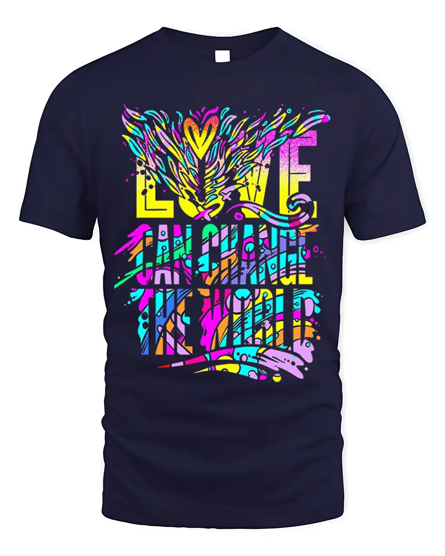 The Love Can Change The World Colorful Positive Graphic T-Shirt is more than just apparel — it’s a reminder that kindness and compassion can make a difference.