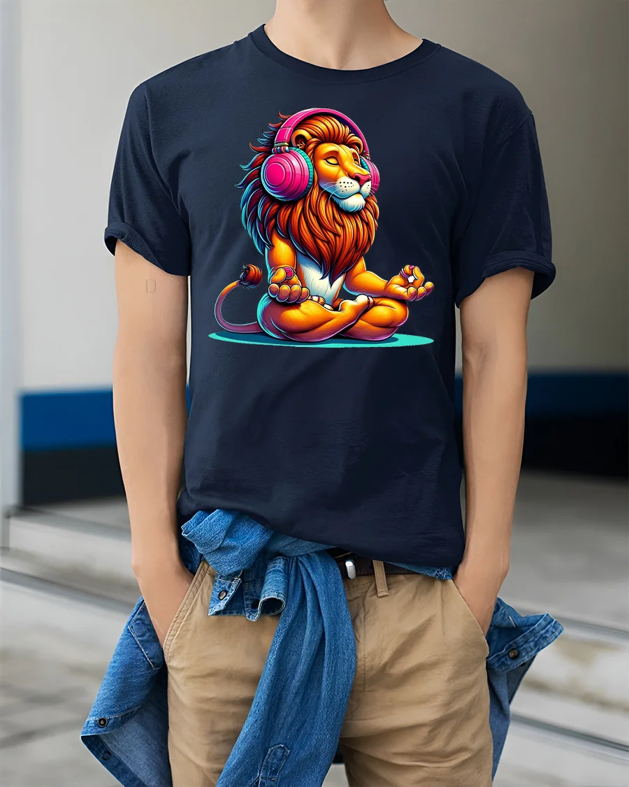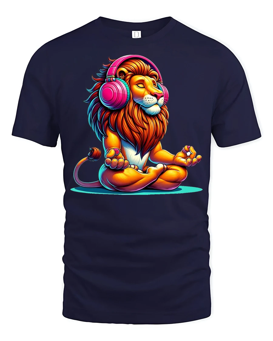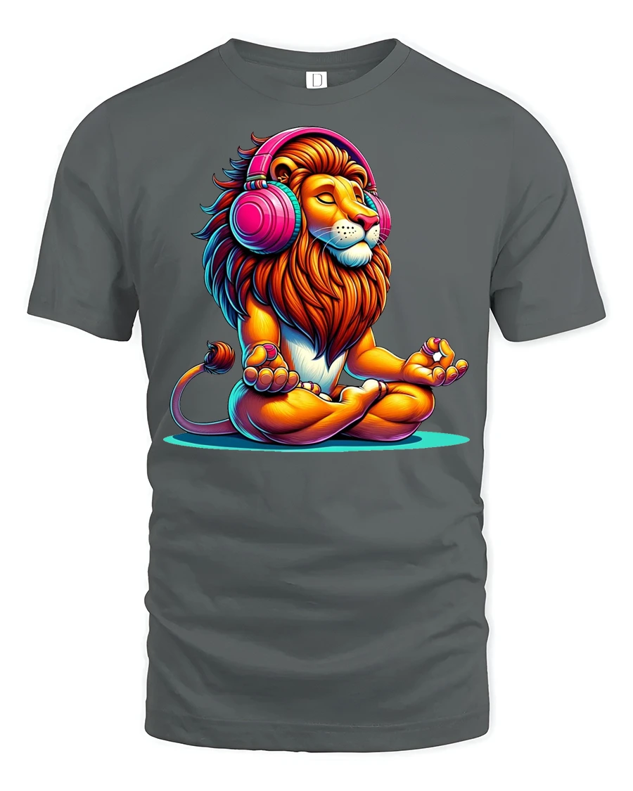 Meditating Lion With Headphones Colorful Zen Graphic T Shirt brings a unique blend of calm energy and vibrant style to your wardrobe.
