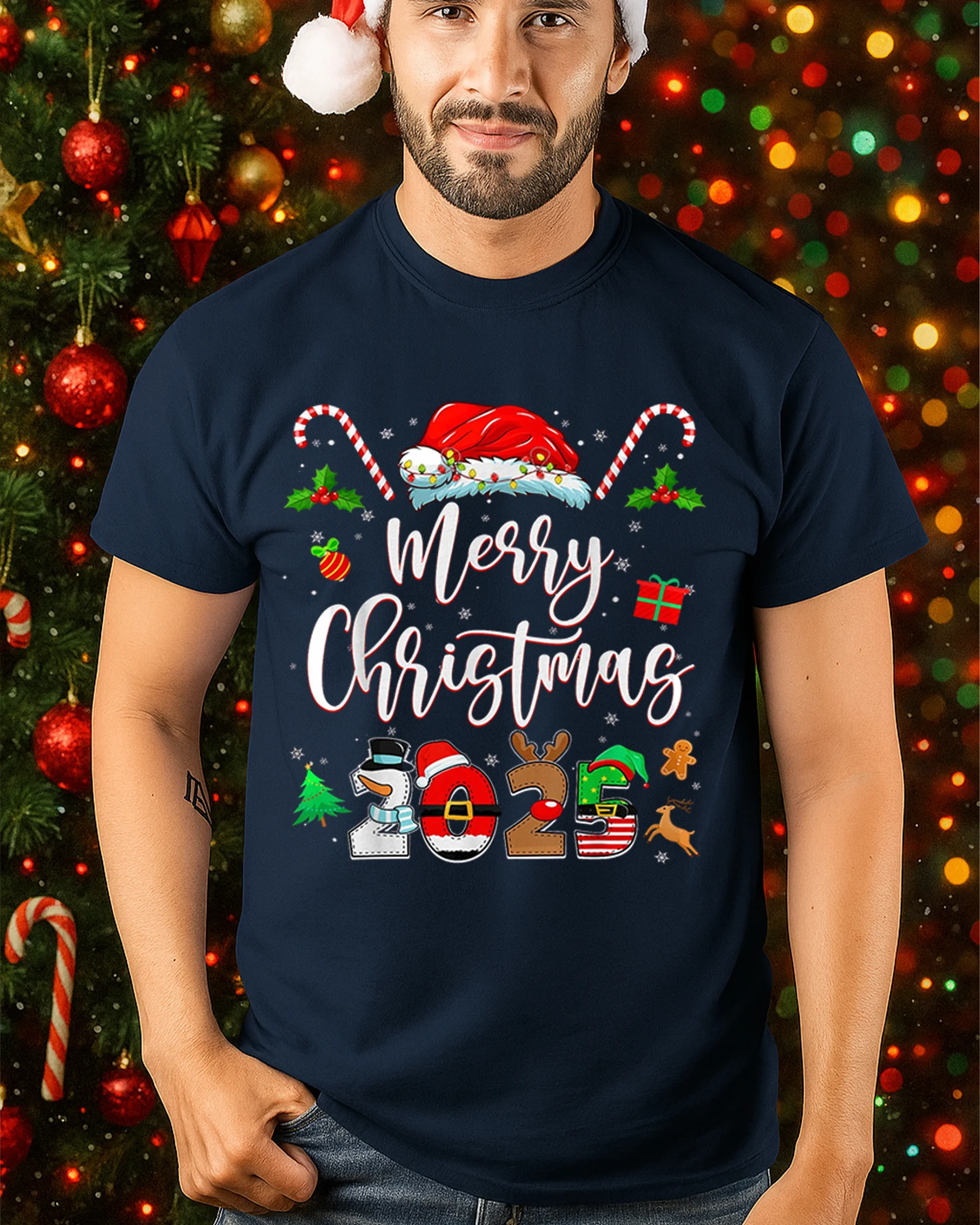 Celebrate the magic of the season with our Merry Christmas 2025 Festive Holiday Graphic T-Shirt. Featuring vibrant Christmas-themed artwork including Santa hats, candy canes, reindeer, and snowflakes, this cheerful tee captures the true joy and warmth of the holidays. Perfect for anyone who loves spreading Christmas spirit, it’s a must-have addition to your festive wardrobe.
