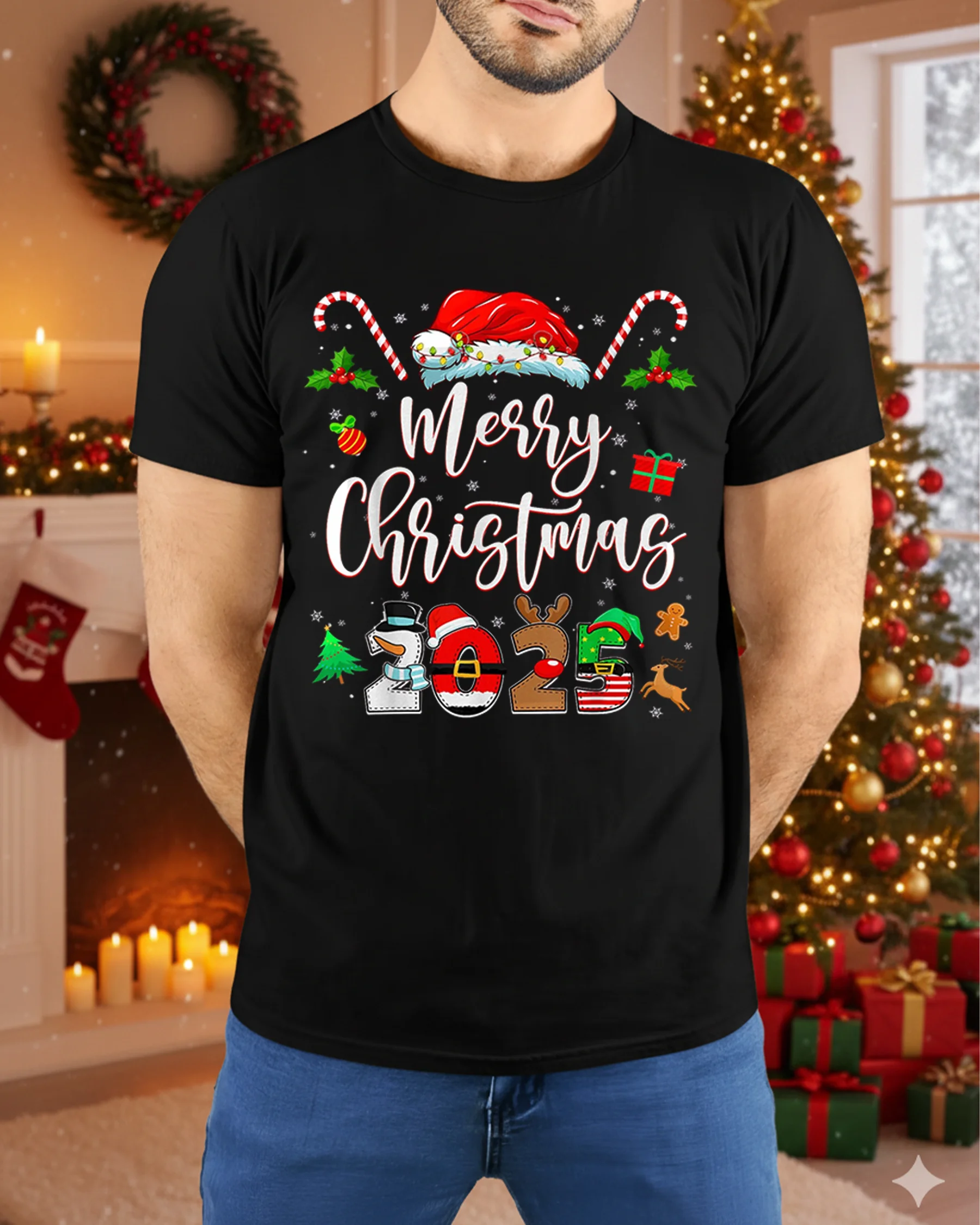 Made from soft, high-quality cotton, this t-shirt provides all-day comfort and durability, making it ideal for Christmas parties, family gatherings, or cozy winter nights by the fire. The colorful 2025 design pops beautifully against the dark background, ensuring you stand out while sharing smiles and holiday cheer. It’s a fun and stylish way to welcome the most wonderful time of the year.
