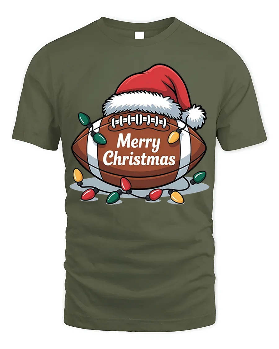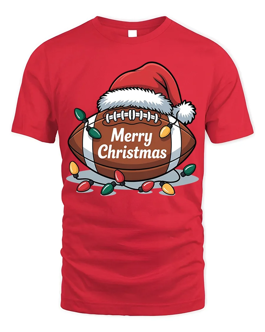 Made from soft, high-quality cotton, this football Christmas t-shirt offers all-day comfort while keeping you looking festive. The vibrant print captures the warmth of the season and the excitement of football season, making it a great choice for parties, tailgates, or family gatherings. Its durable design ensures that your holiday spirit stays bright wash after wash.