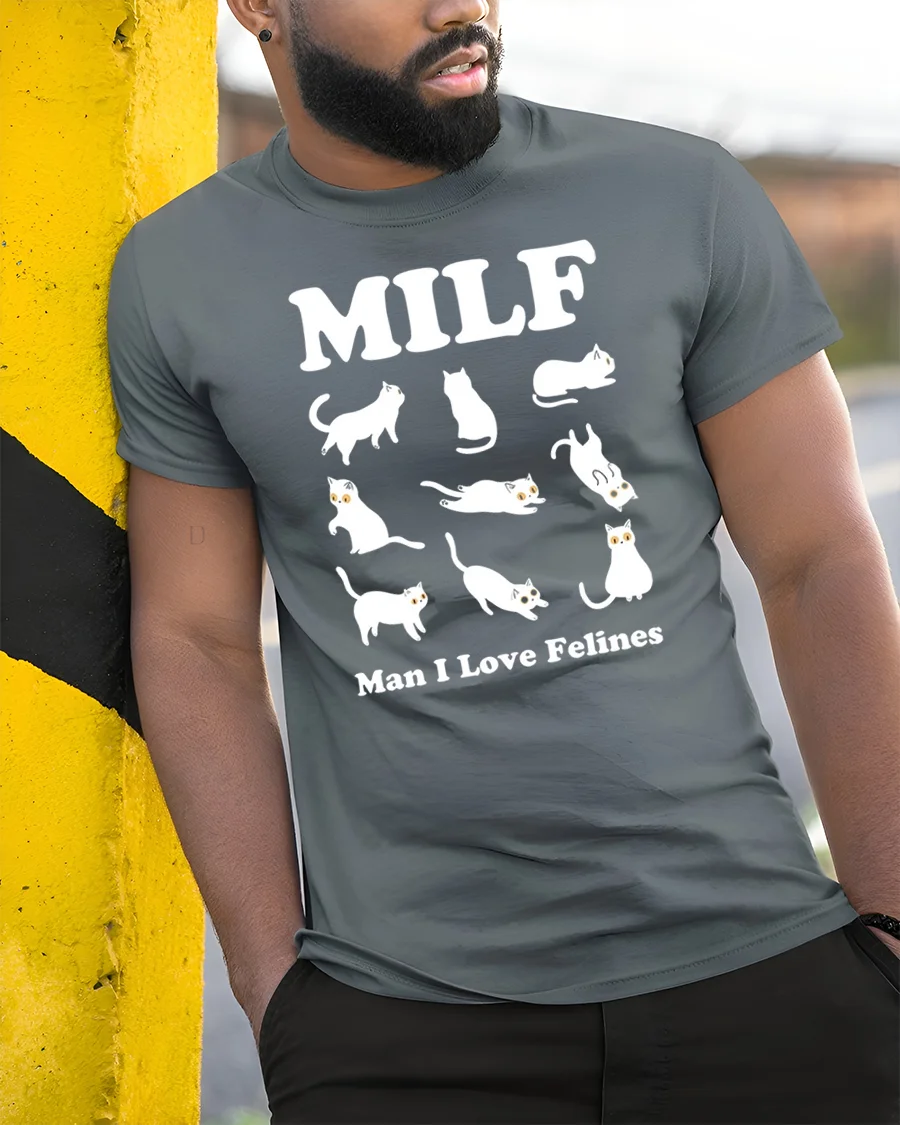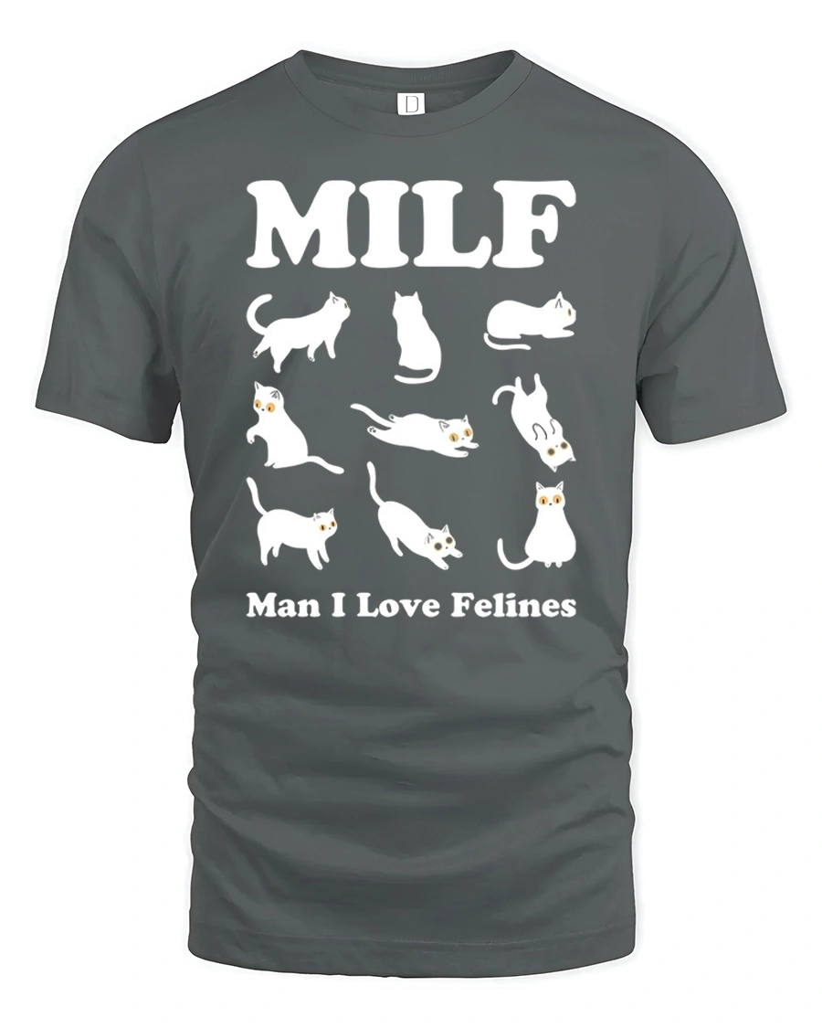 MILF Man I Love Felines Funny Cat Lover Humor T Shirt delivers a playful twist on a classic acronym with a fun feline themed joke.