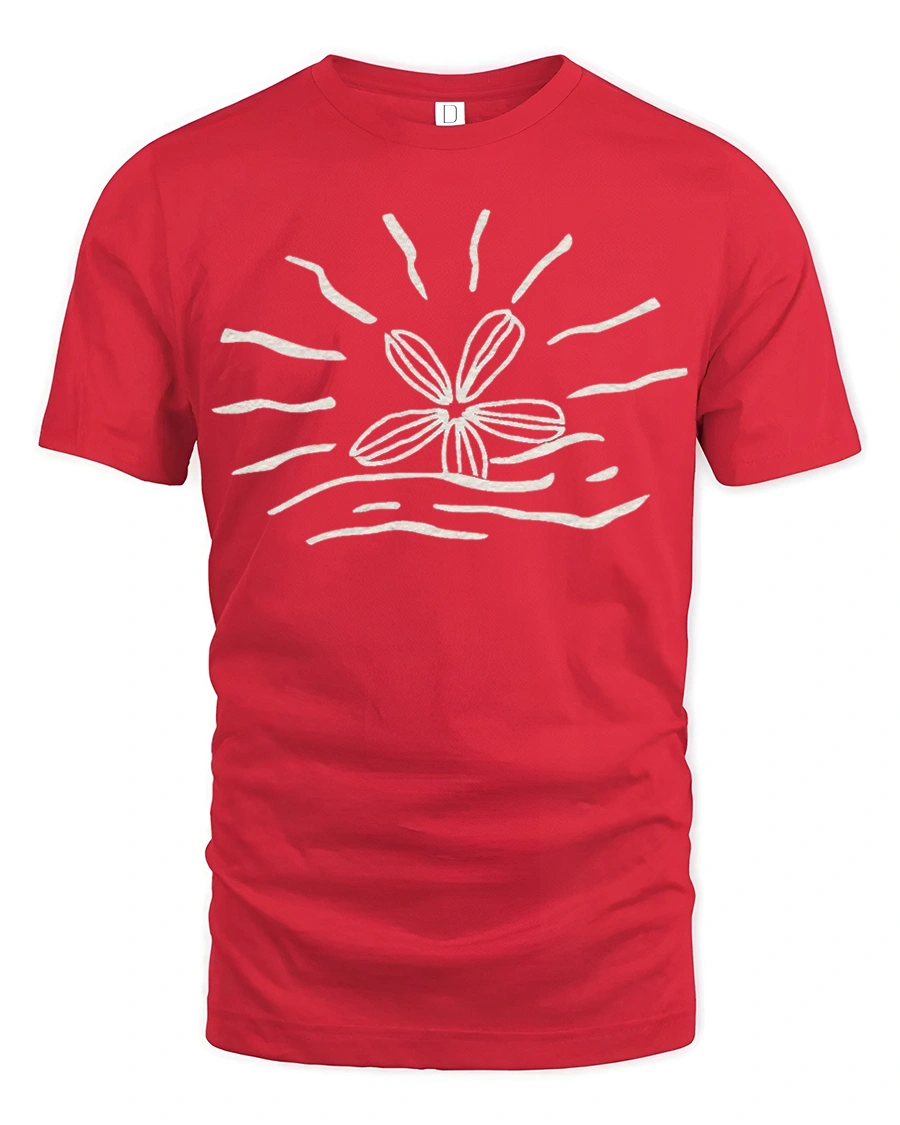 Minimal Flower Sun Wave Graphic T Shirt Aesthetic Nature Tee - red t-shirt on white background