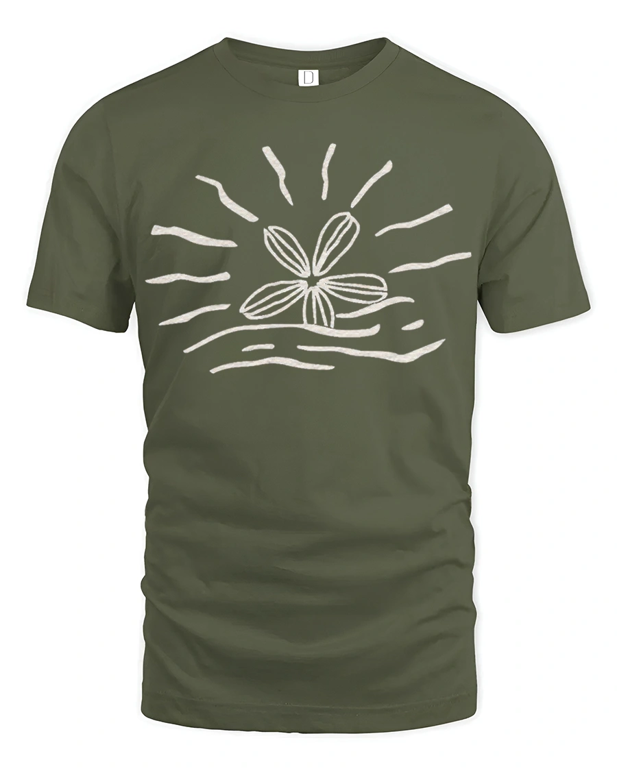 Minimal Flower Sun Wave Graphic T Shirt Aesthetic Nature Tee - military green t-shirt on white background