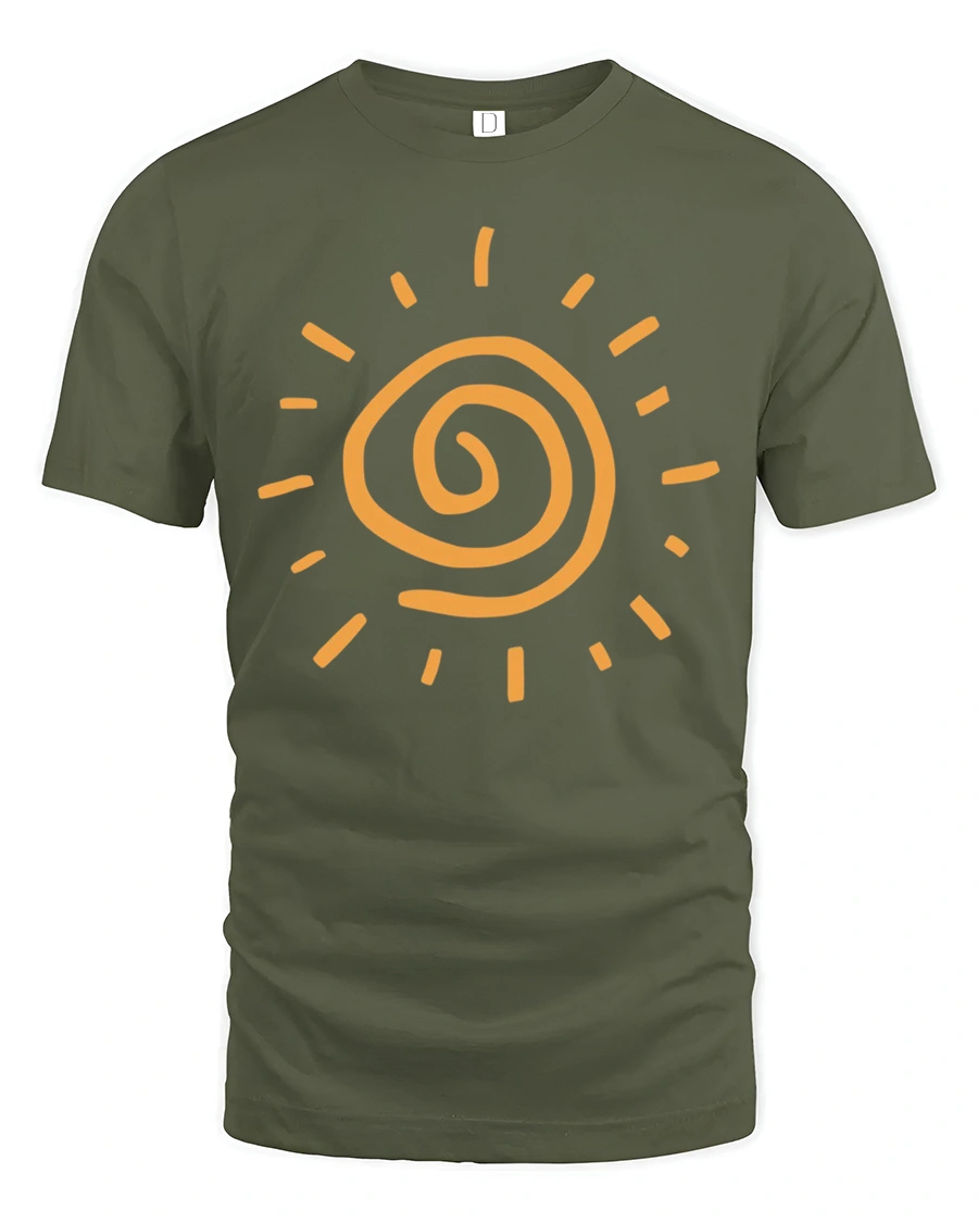 Minimalist Spiral Sun Graphic Tee Bright Positive Energy Aesthetic Tshirt - military green t-shirt on white background