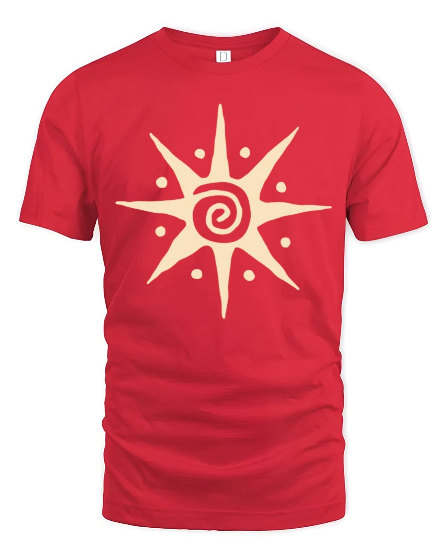 Minimalist Spiral Sun Symbol Graphic Tee Boho Aesthetic Vibe Tshirt - red t-shirt on white background