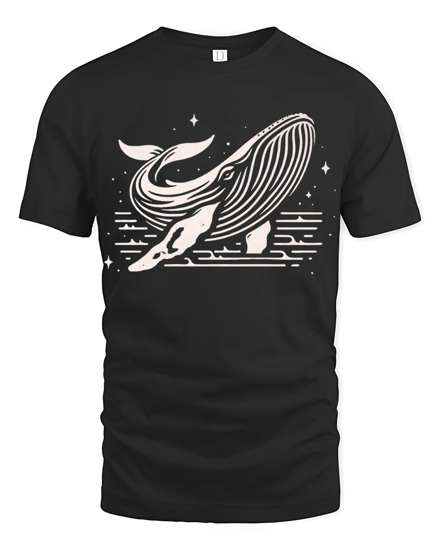Minimalist Whale Ocean Night Sky Artistic Graphic Tee Tshirt highlights the beauty of marine life through a refined artistic illustration inspired by ocean calm and quiet night atmosphere.