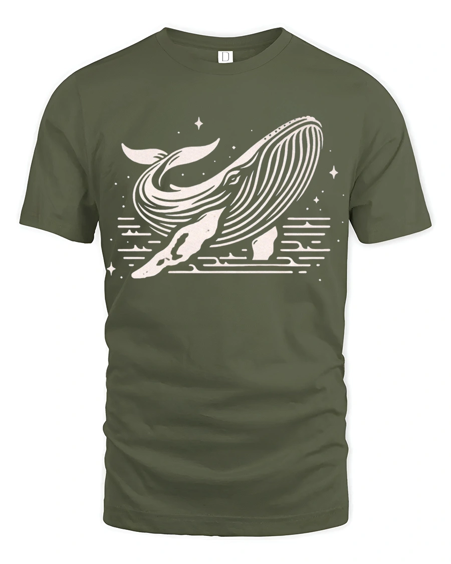 Ideal for individuals who enjoy marine life coastal scenery and artistic minimal style this whale tshirt design highlights creativity relaxation and nature influenced visual identity.