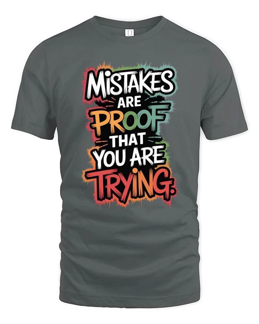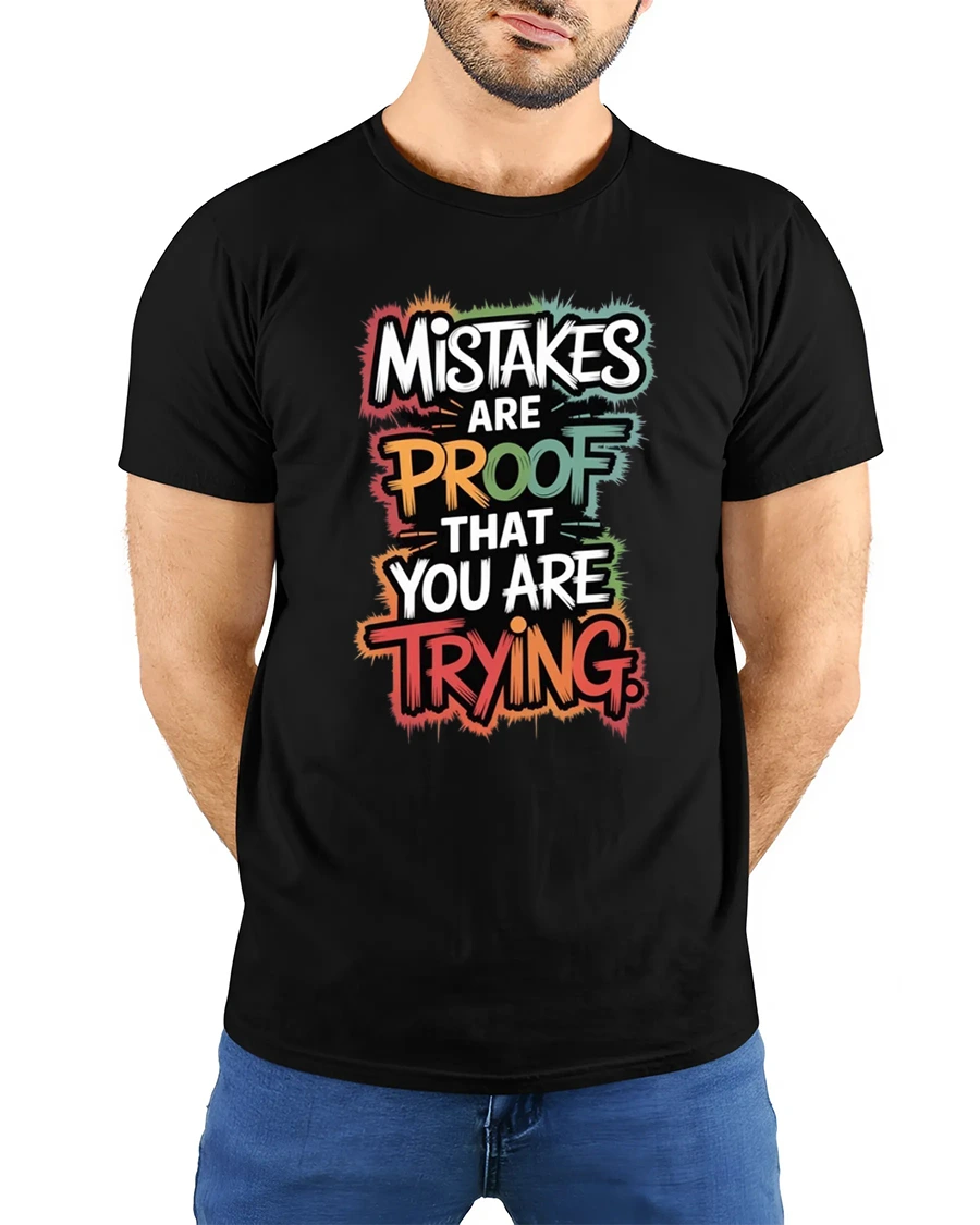 Mistakes Are Proof That You Are Trying Inspirational Quote T Shirt is crafted with soft comfortable fabric that feels great throughout the day. The high quality print keeps the bright colors and bold message sharp and eye catching. This tee celebrates resilience, learning, and determination while expressing a positive mindset that encourages progress and personal growth through every challenge and new experience.