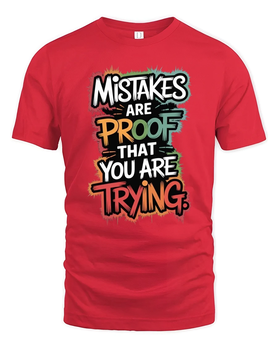 Mistakes Are Proof That You Are Trying Inspirational Quote T Shirt delivers a powerful motivational message through bold colorful typography. The design highlights the inspiring phrase Mistakes Are Proof That You Are Trying, turning a simple statement into a meaningful reminder that growth comes from effort and perseverance. The vibrant lettering and energetic style give the graphic a modern motivational look that stands out with confidence and positivity.