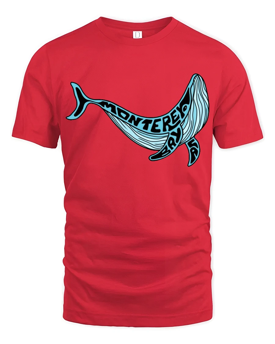 Monterey Bay Whale Ocean Coastal Travel Graphic Tee Tshirt - red t-shirt on white background