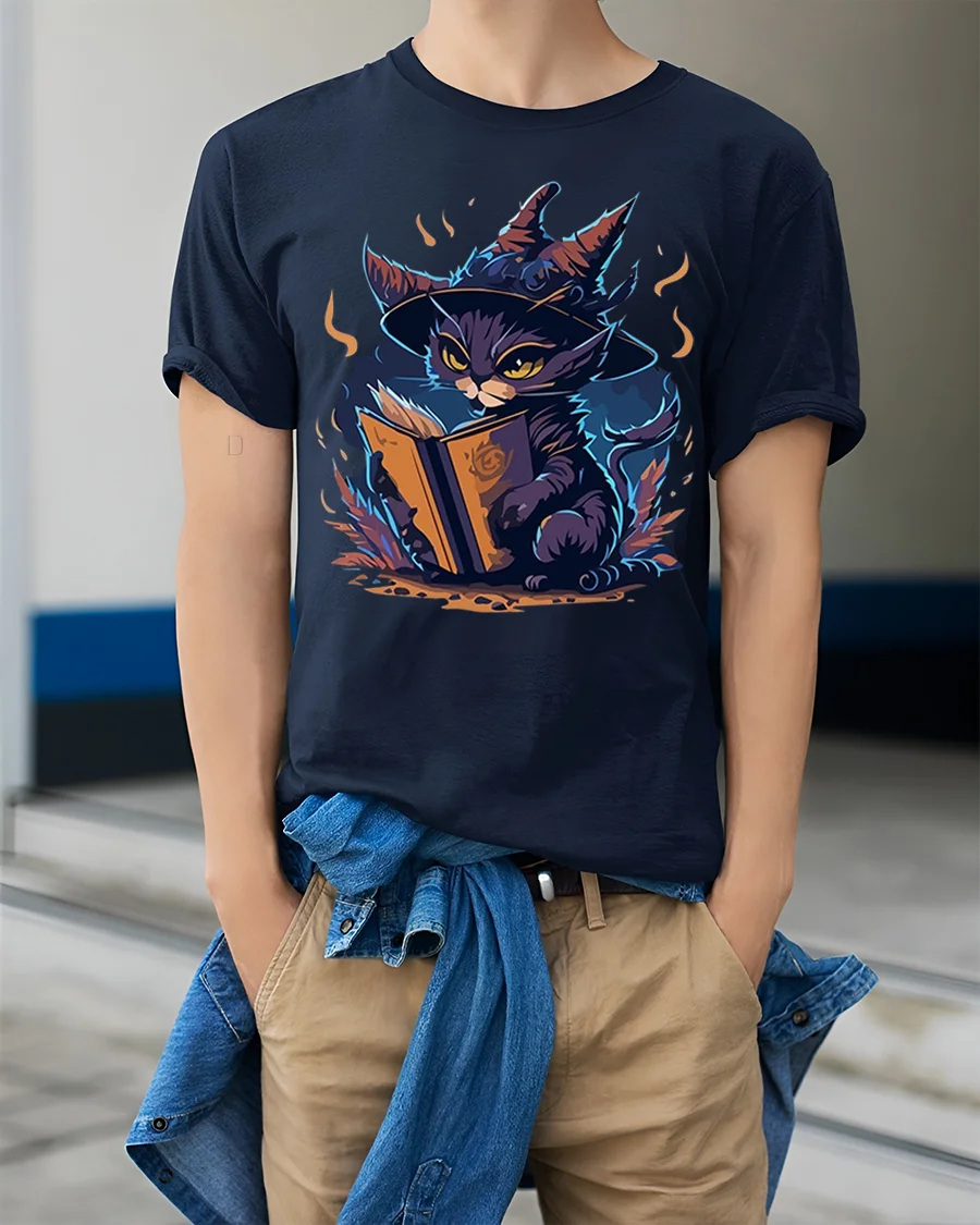It’s not only a great casual wear piece but also a fantastic gift for cat enthusiasts, gothic fashion fans, and anyone who loves a touch of magic. Pair it with jeans, shorts, or a jacket to create a versatile outfit. The Mystic Witch Cat Reading Spellbook Graphic T-Shirt isn’t just apparel—it’s wearable art that combines style, humor, and supernatural charm.