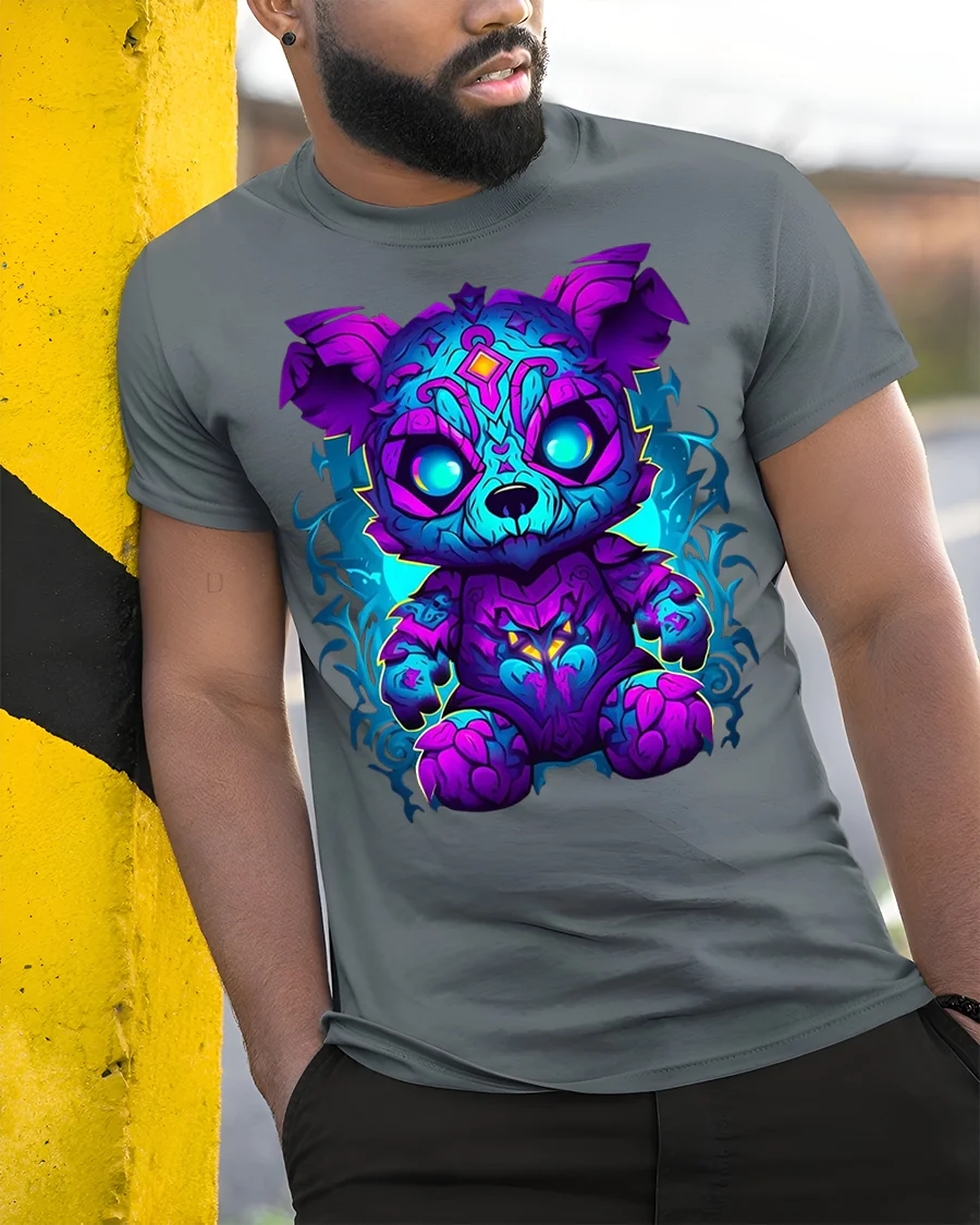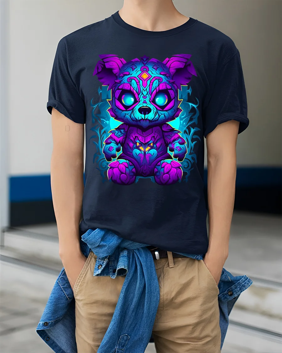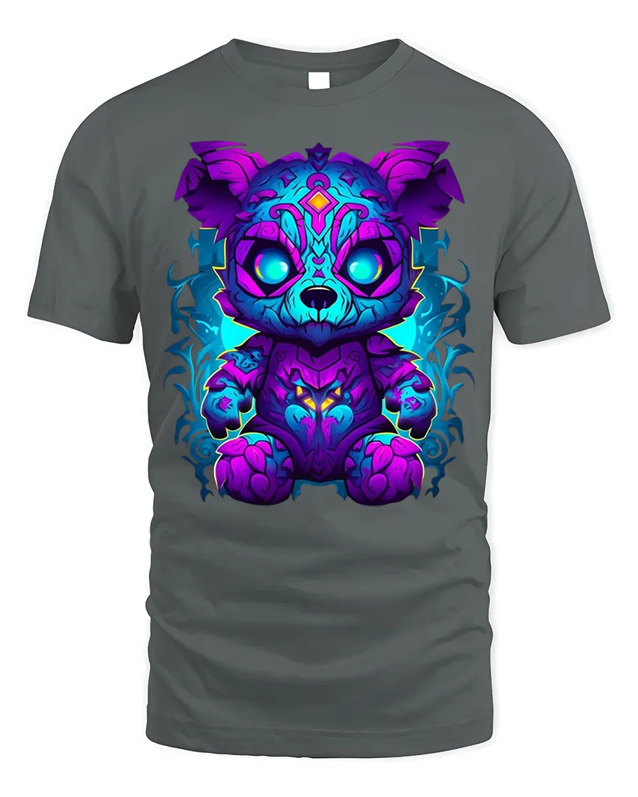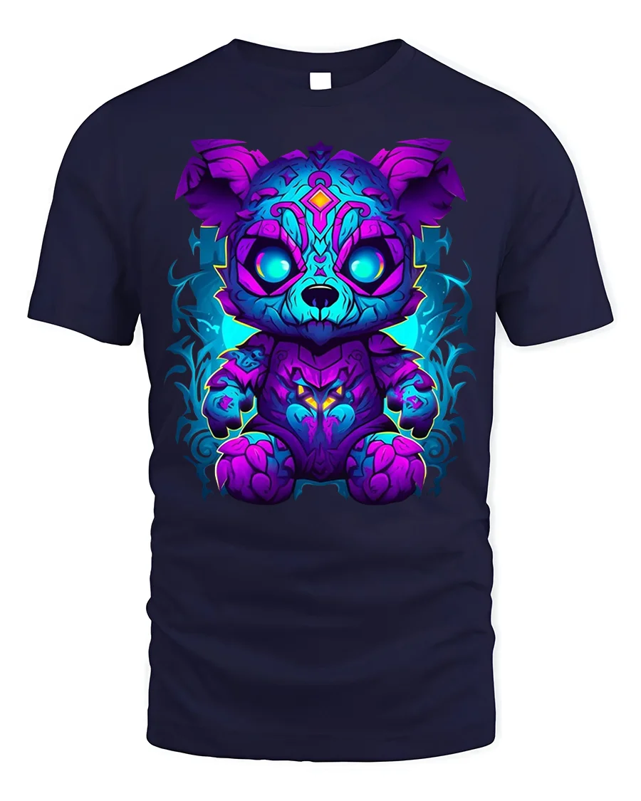 Step into a world of color and imagination with the Neon Cyber Bear Fantasy Graphic T-Shirt. Featuring a striking bear design glowing in electric shades of blue, purple, and neon accents, this unique graphic tee captures the fusion of fantasy art and futuristic style. The intense glowing eyes and detailed patterns give the bear a mystical, otherworldly look that makes it stand out from ordinary designs.