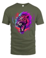Home Trending Neon Cyberpunk Tiger Fierce Attack Colorful Artwork Graphic T-Shirt