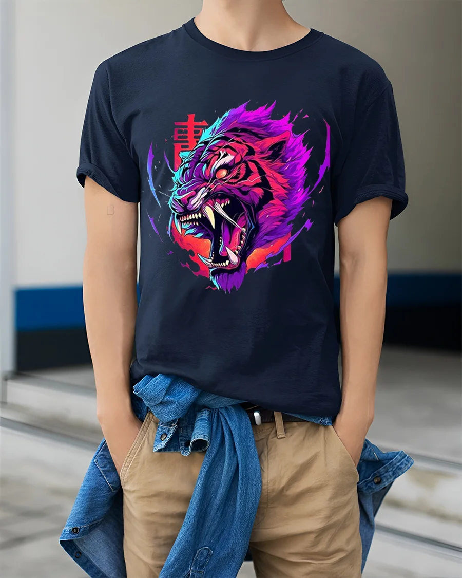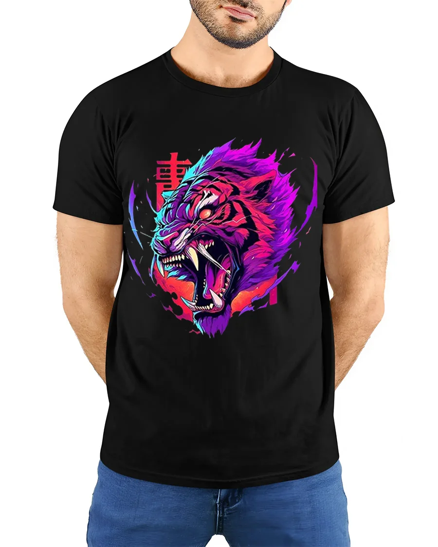 Crafted from soft, breathable fabric, this graphic t-shirt ensures long-lasting comfort whether you’re out on the streets, at events, or relaxing with friends. The premium print technology keeps every detail sharp—from the glowing eyes and sharp fangs to the neon flames—ensuring the artwork stays vibrant wash after wash. Ideal for fans of cyberpunk, fierce animal art, and bold streetwear designs, this tee adds powerful personality to any outfit.