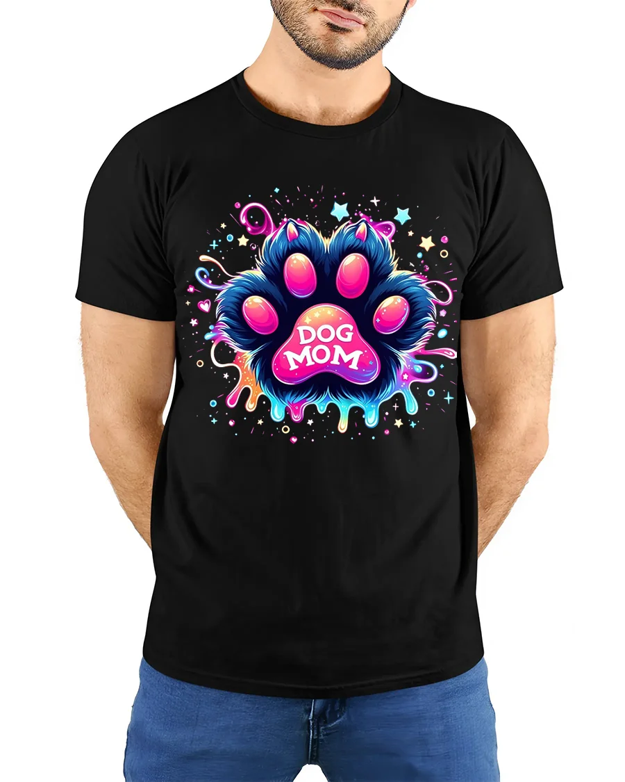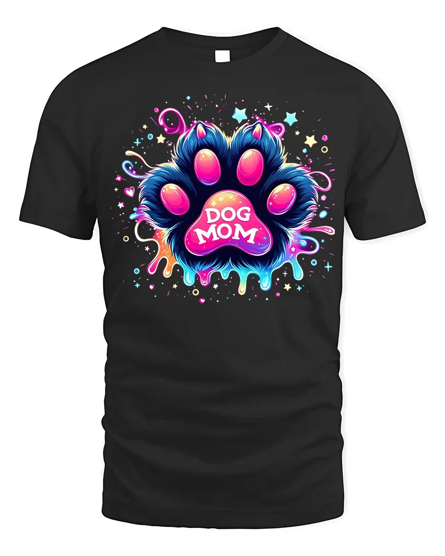 Celebrate your love for your furry friend with the Neon Dog Mom Paw Print Colorful Graphic T-Shirt. Featuring a bold paw print design bursting with neon colors, stars, and vibrant splashes, this eye-catching tee perfectly represents the energy and joy of being a proud dog mom. With its glowing artistic style, it’s the ultimate statement piece for pet lovers who want to show their passion in a fun and modern way.