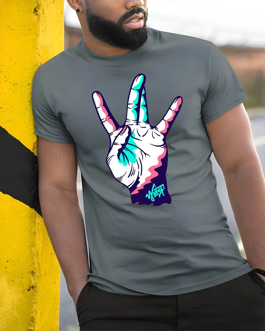 The Neon Hand Gesture Street Style Graphic Tee Cool Vibe Tshirt delivers a bold and modern look inspired by urban culture and vibrant art.