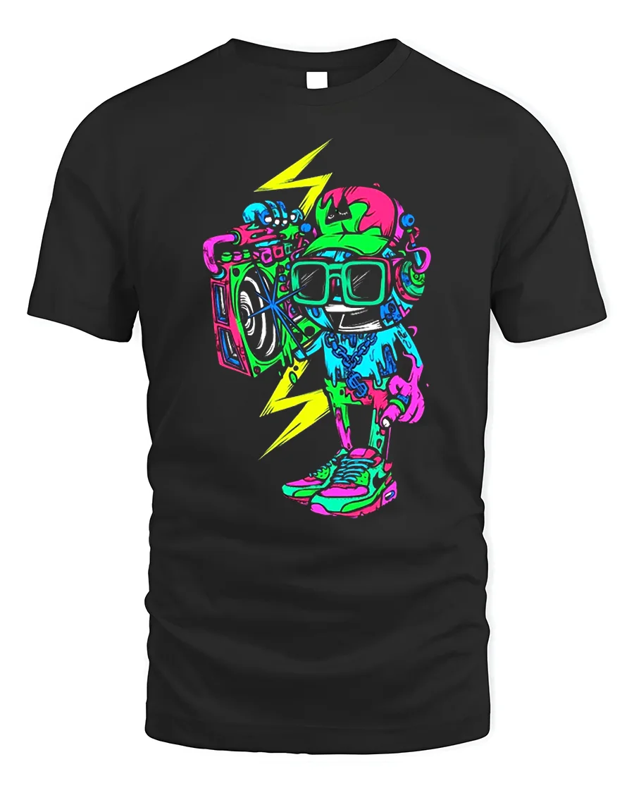 Designed with soft, breathable fabric, this graphic t-shirt ensures comfort while maintaining durability for everyday wear. The premium printing technology keeps the neon colors sharp and long-lasting, making every detail—from the oversized glasses to the dripping paint effects—pop with style. Whether you’re going to a music event, hanging out with friends, or simply expressing your personality, this shirt delivers a fresh and energetic look.