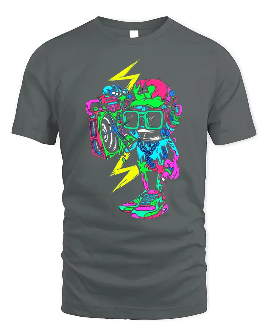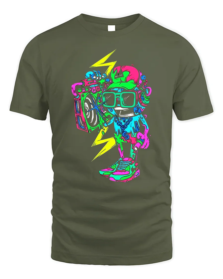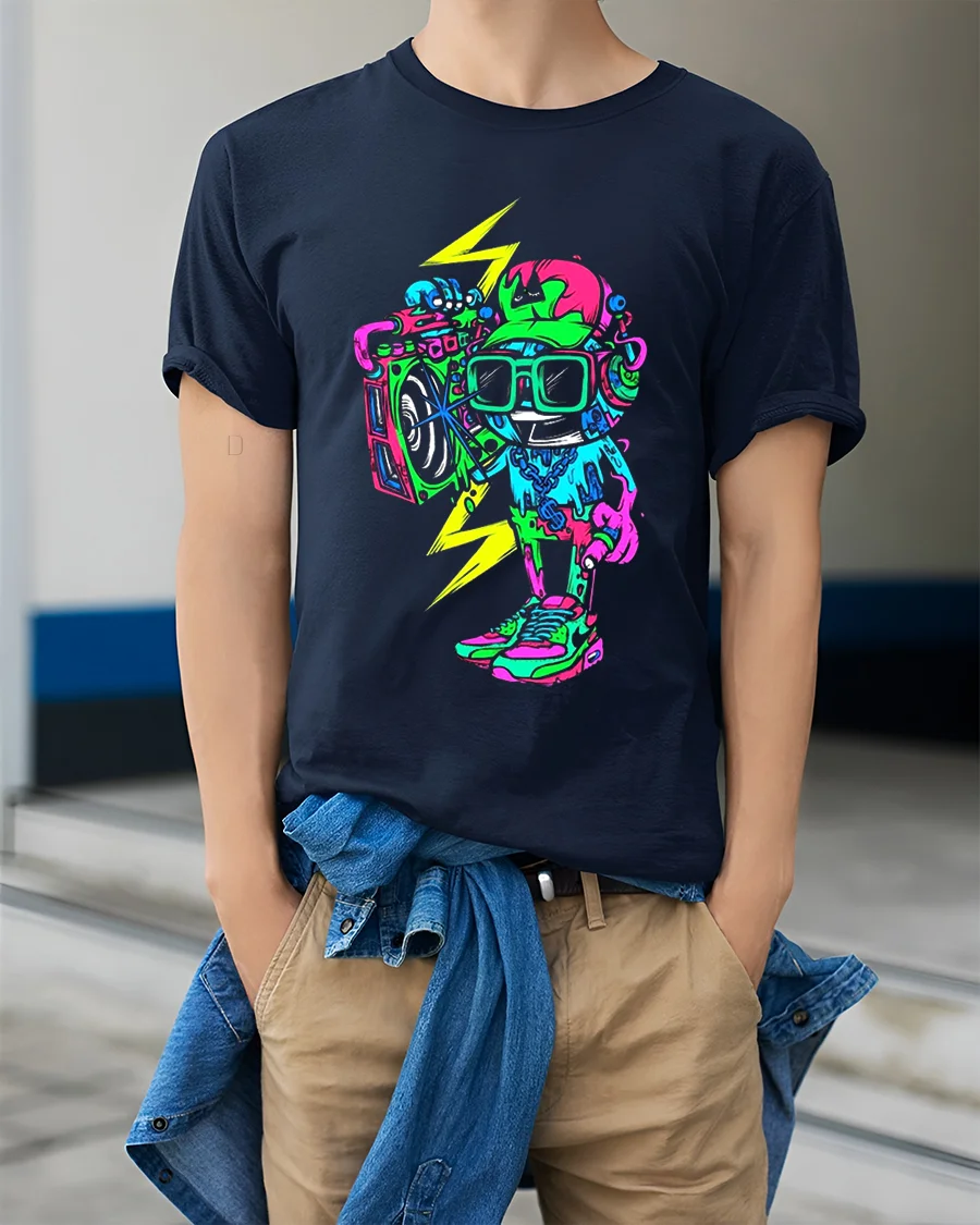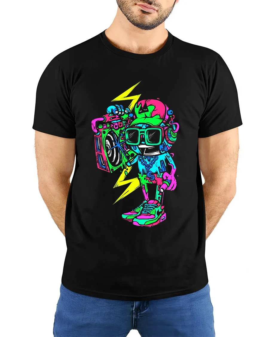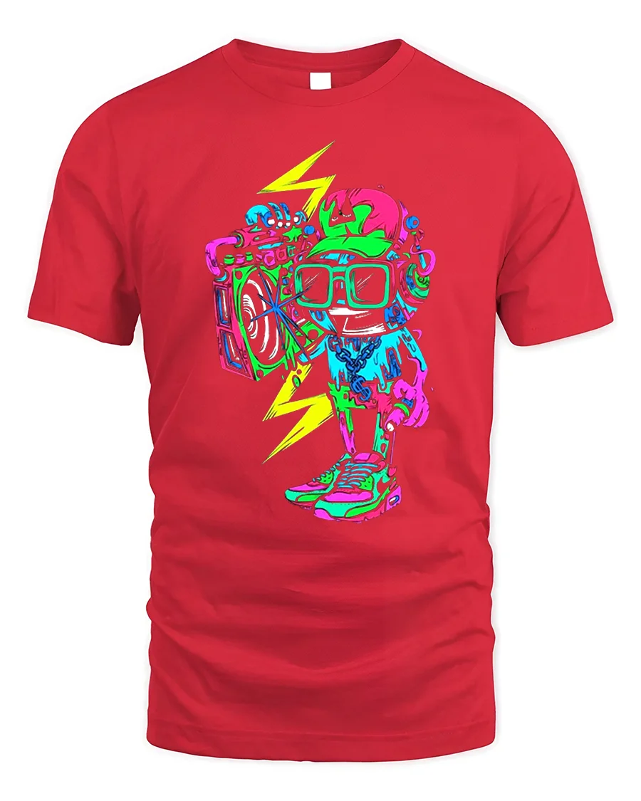 Neon Hip-Hop Robot Boombox Artwork Graphic T-Shirt Street Style brings a bold and electrifying look inspired by urban culture and retro music energy. Featuring a vibrant neon robot character holding a boombox, this tee showcases a mix of street vibes, hip-hop attitude, and futuristic flair. The bright colors and comic-style details make it the perfect standout piece for anyone who loves expressive and creative fashion.