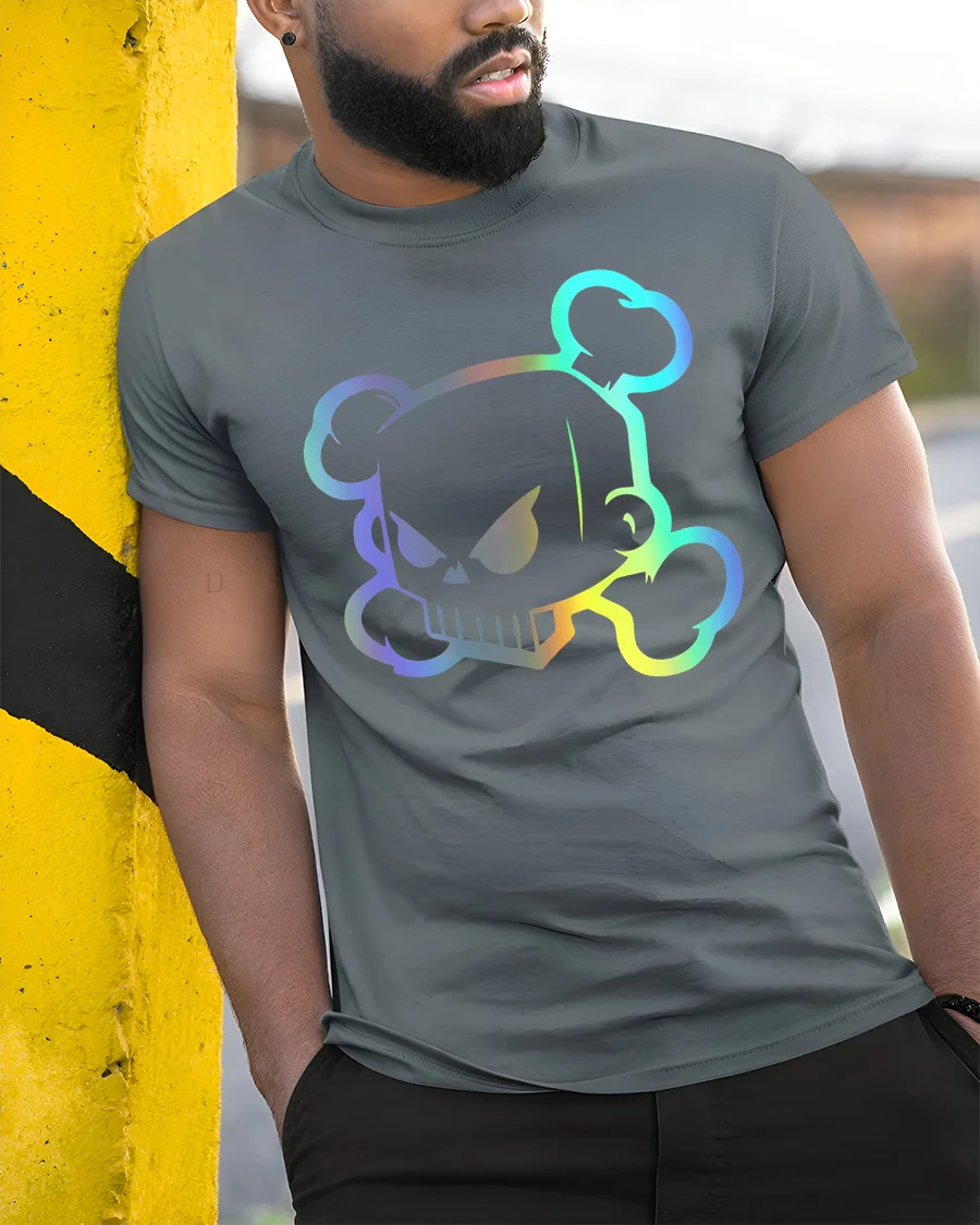 Neon Skull Graphic T Shirt Cool Cyber Punk Style Streetwear Tee delivers bold futuristic energy through striking holographic inspired artwork. The modern skull design combines edgy character with vibrant neon style visual impact, creating a powerful graphic statement that reflects individuality and contemporary fashion influence. The sleek outline and glowing effect enhance the artistic appeal with a unique modern aesthetic.