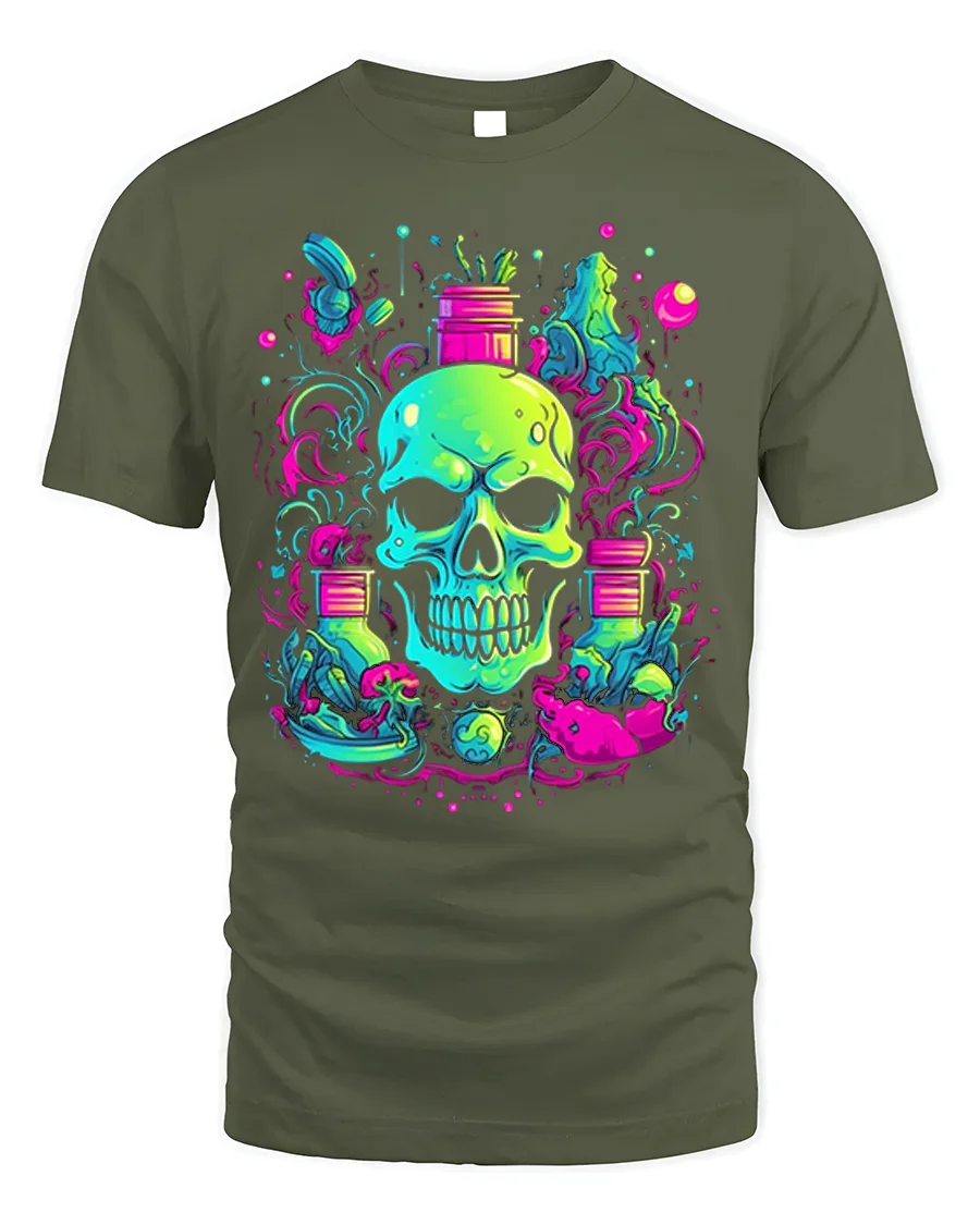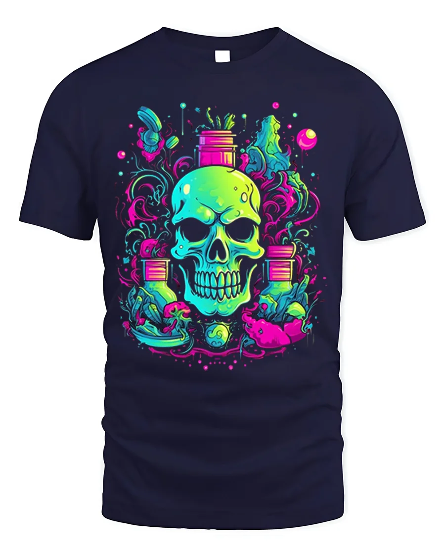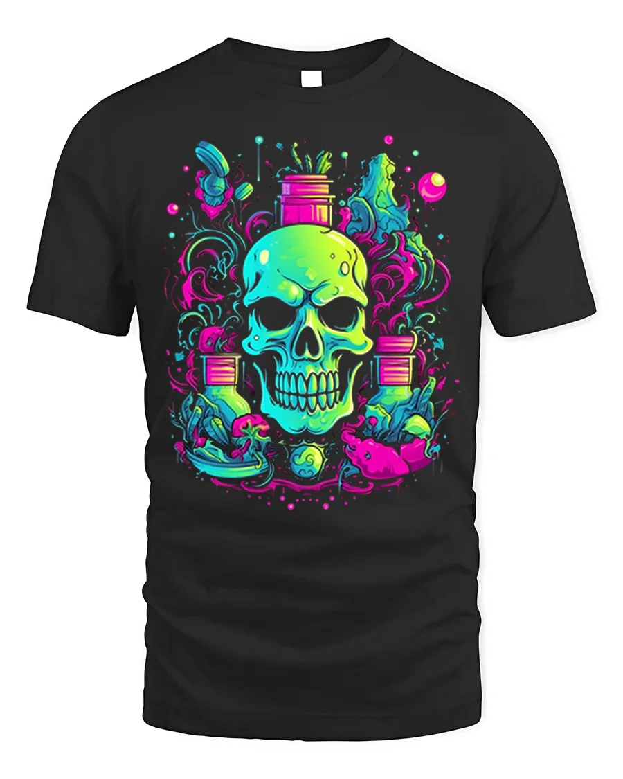 Neon Toxic Skull Psychedelic Art T-Shirt