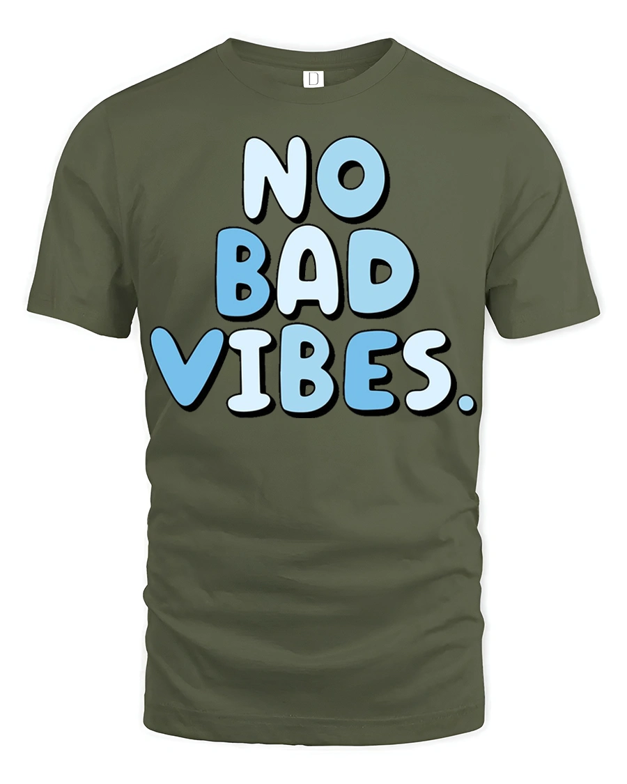 No Bad Vibes Cute Aesthetic Feel Good T Shirt - military green t-shirt on white background