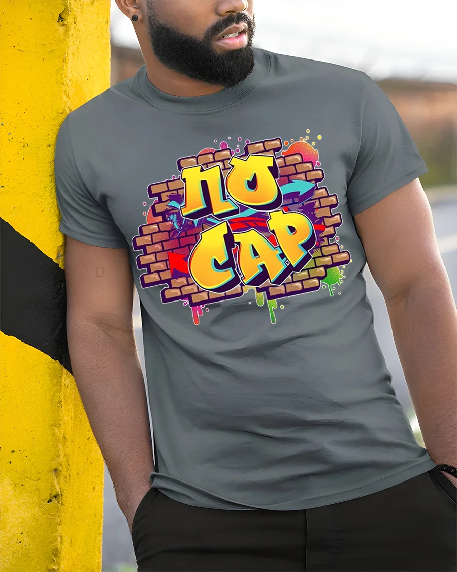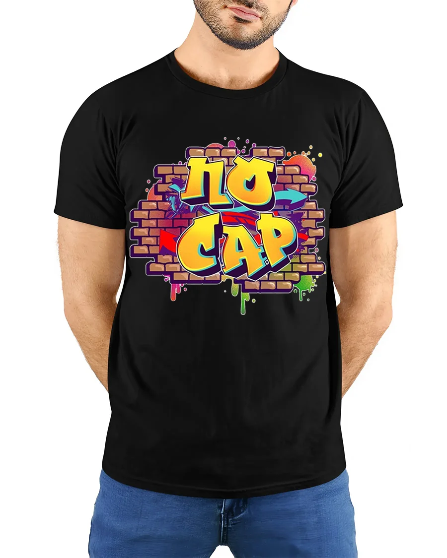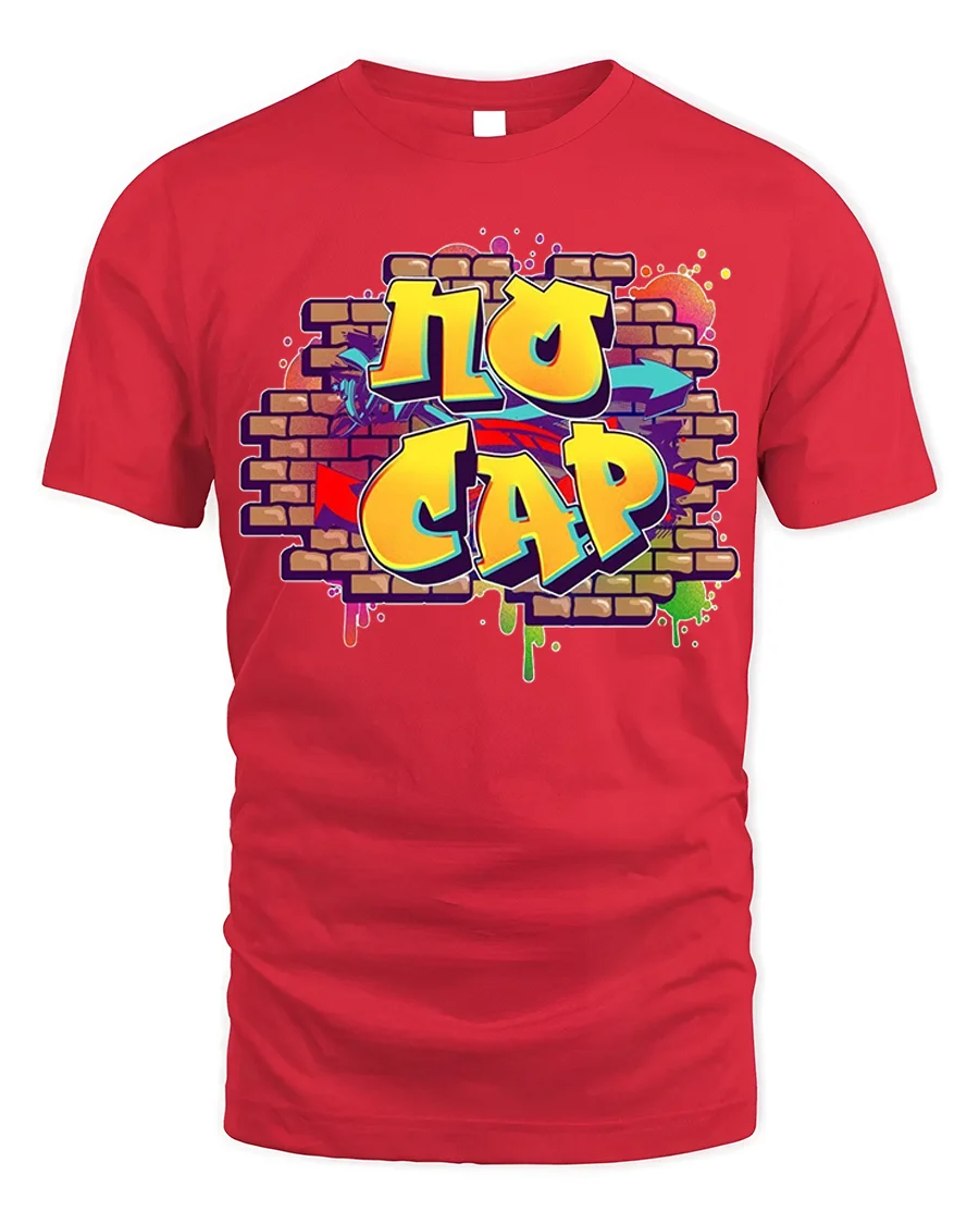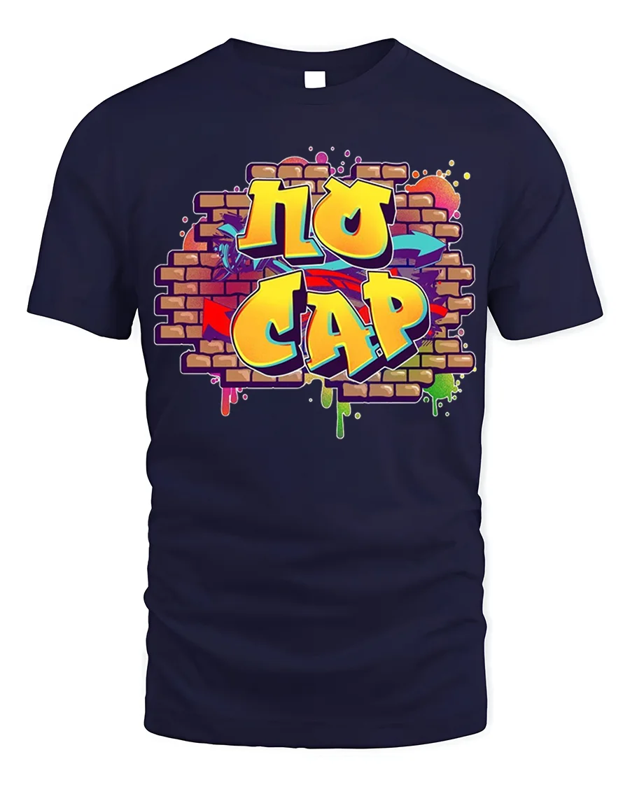 Show your style with attitude in the No Cap Graffiti Style Graphic T-Shirt Bold Urban Streetwear Tee, featuring a vibrant street-art design that pops with bold lettering and brick-wall graphics. The colorful spray-paint splashes and layered graffiti aesthetic make this tee perfect for fans of hip hop culture, urban fashion, and expressive streetwear. Whether you love modern slang or simply enjoy eye-catching graphic art, this tee makes a strong statement.