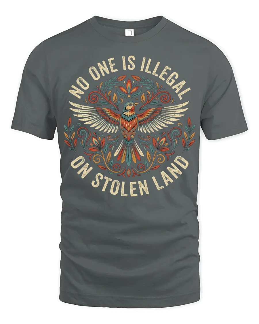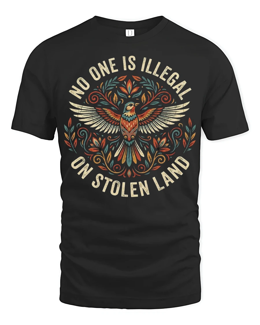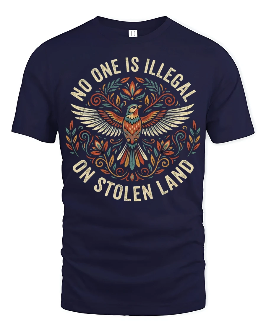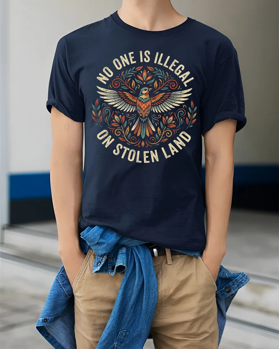 No One Is Illegal On Stolen Land Bold Statement Graphic T Shirt delivers a powerful message through striking design and meaningful expression.