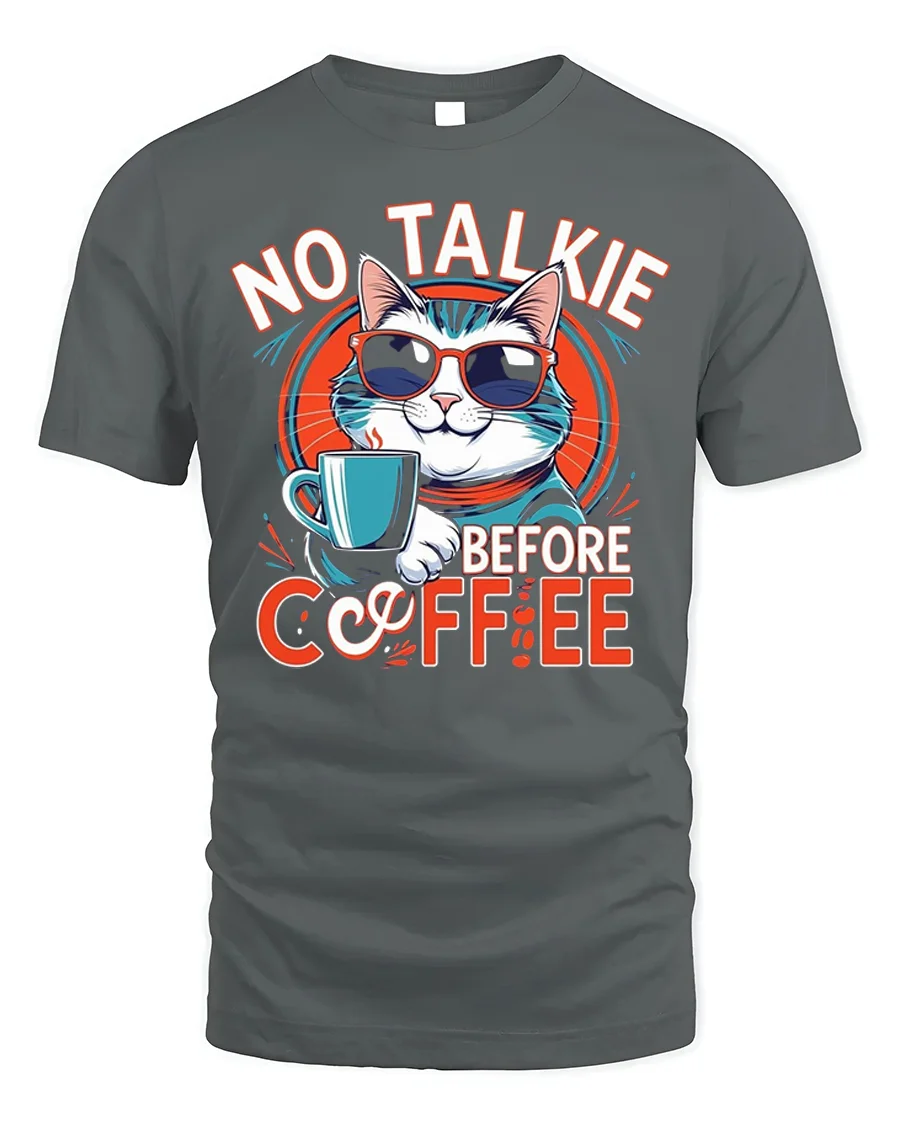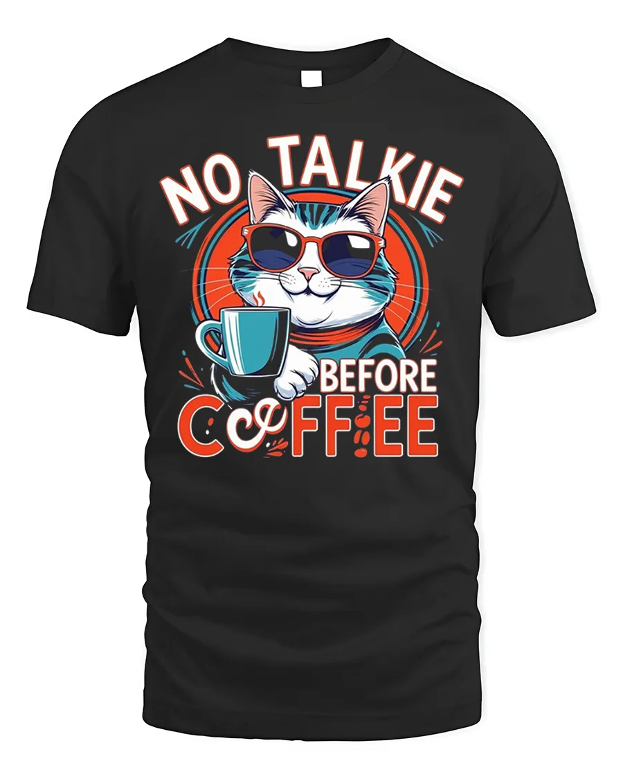 Start your mornings right with the No Talkie Before Coffee Funny Cat T-Shirt—a playful, comfortable, and eye-catching shirt that perfectly captures the coffee-first lifestyle.