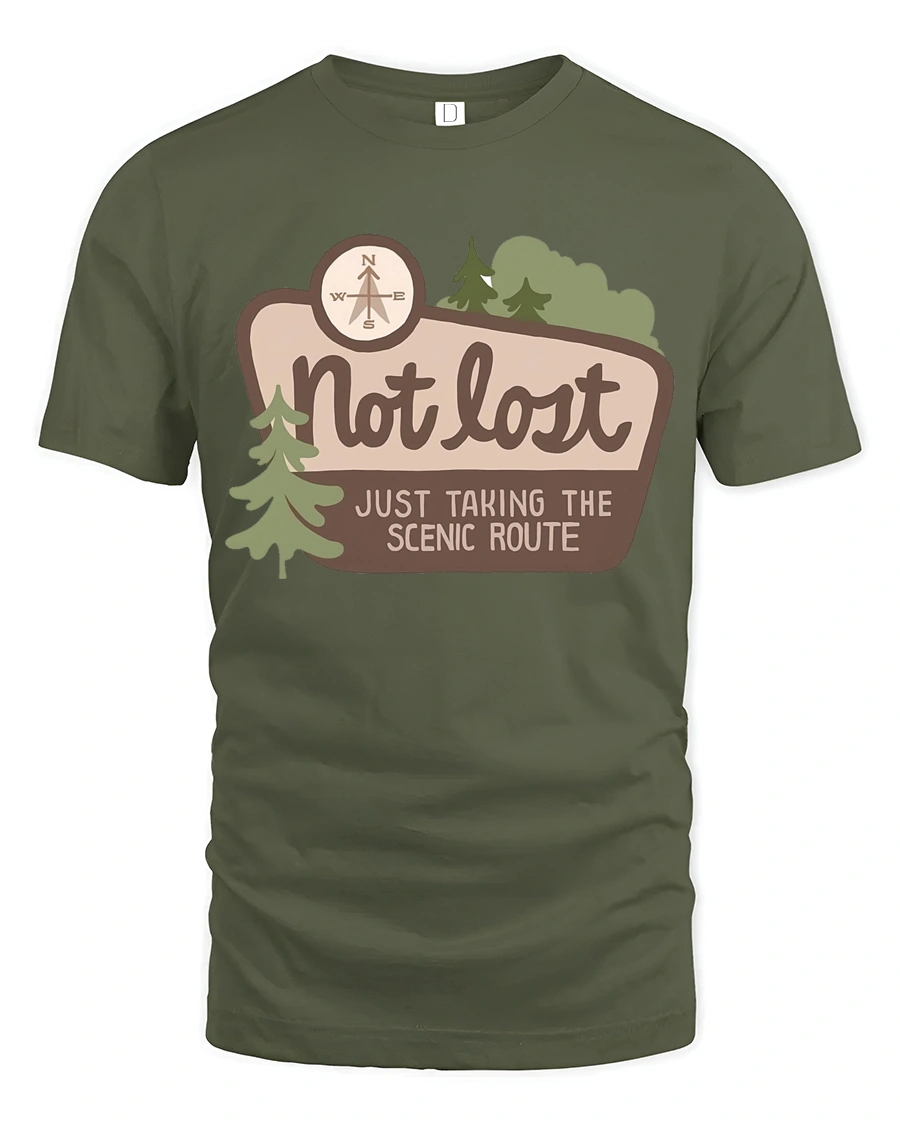 Not Lost Scenic Route Tshirt Funny Travel Adventure Graphic - military green t-shirt on white background