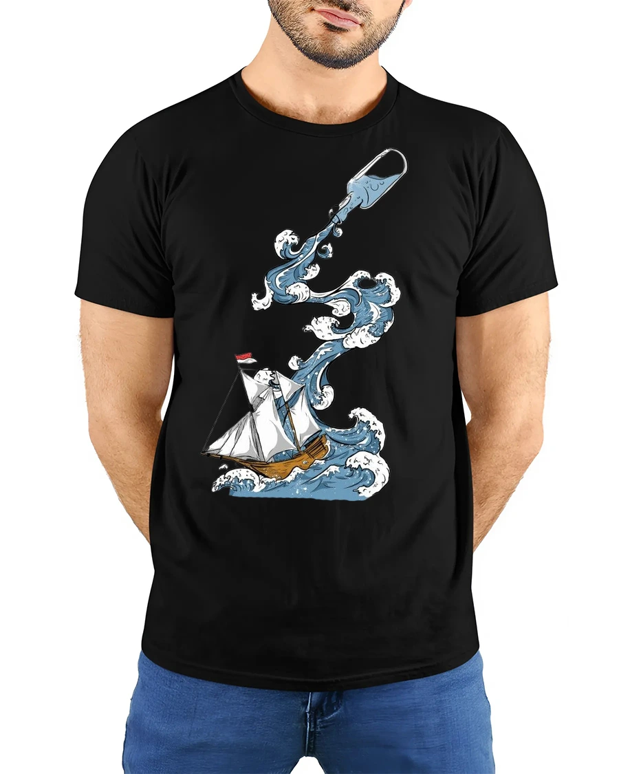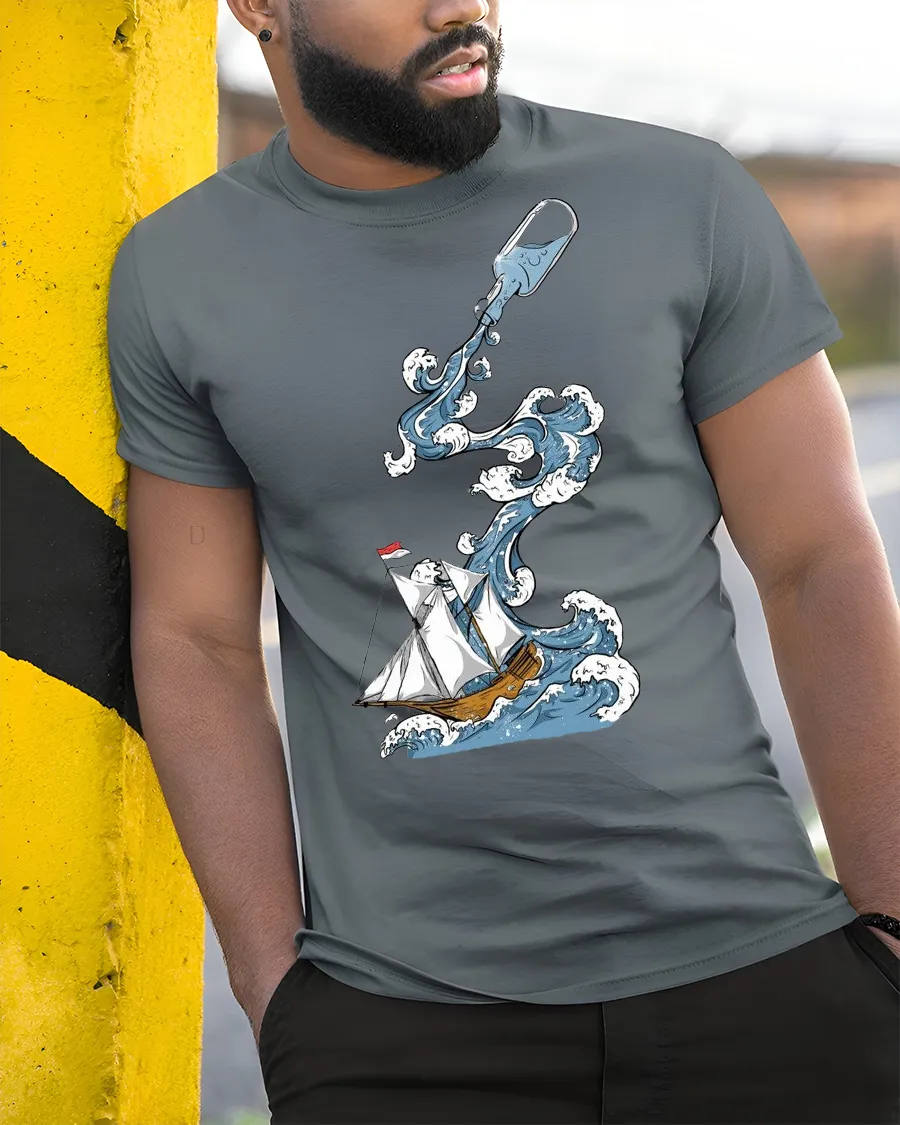 Ocean Adventure Ship In Bottle Wave Graphic Tee Nautical Art captures the spirit of exploration with a creative ocean inspired illustration.