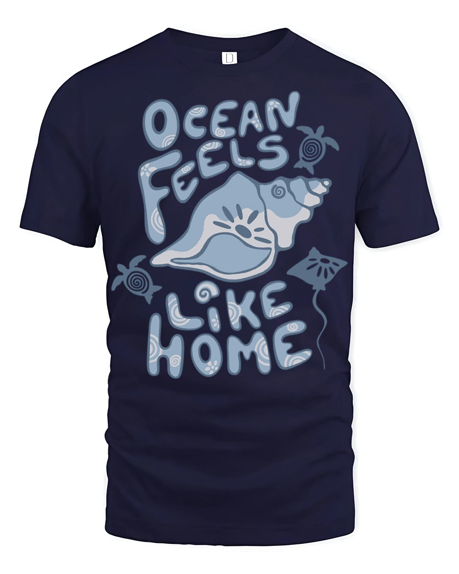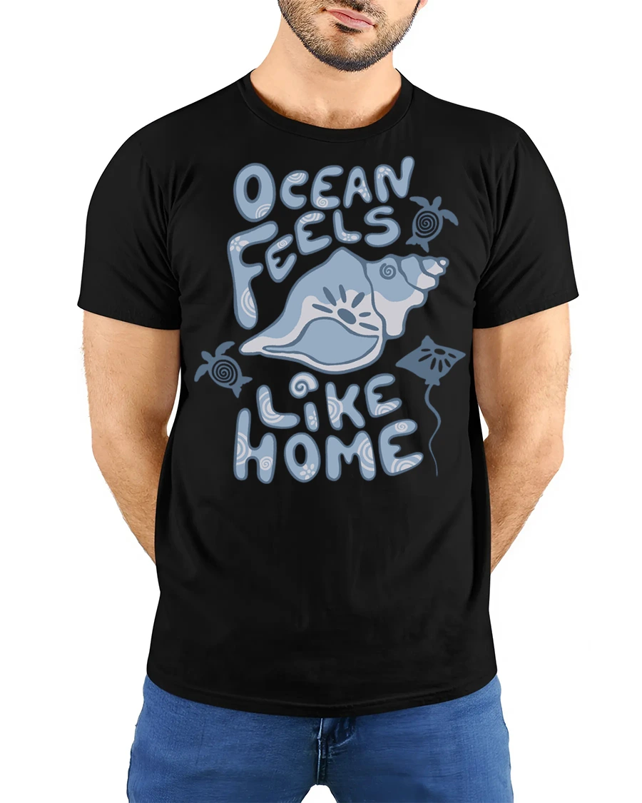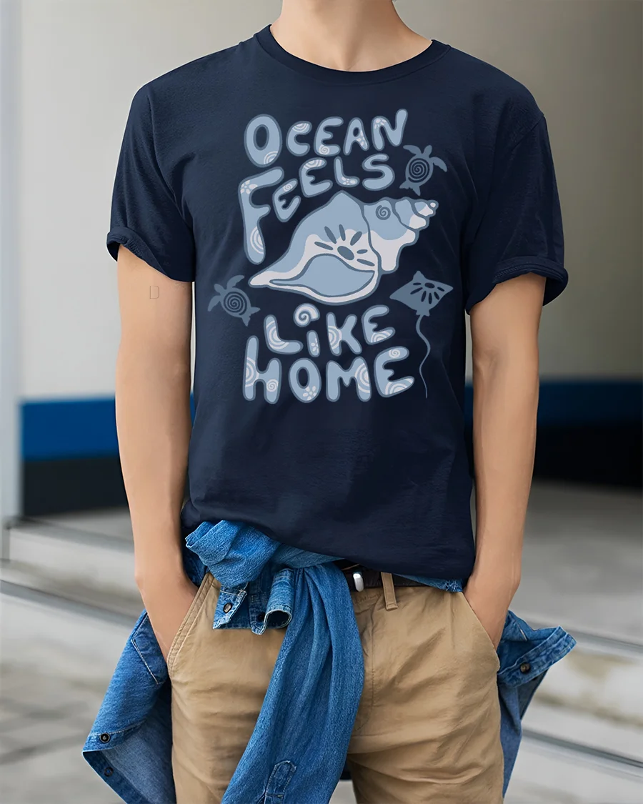 Inspired by peaceful waves and coastal lifestyle, this graphic tee expresses warmth, comfort, and connection with nature. The ocean feels like home message symbolizes belonging, relaxation, and freedom, creating a meaningful design that remains fashionable while offering a gentle reminder of favorite seaside memories.