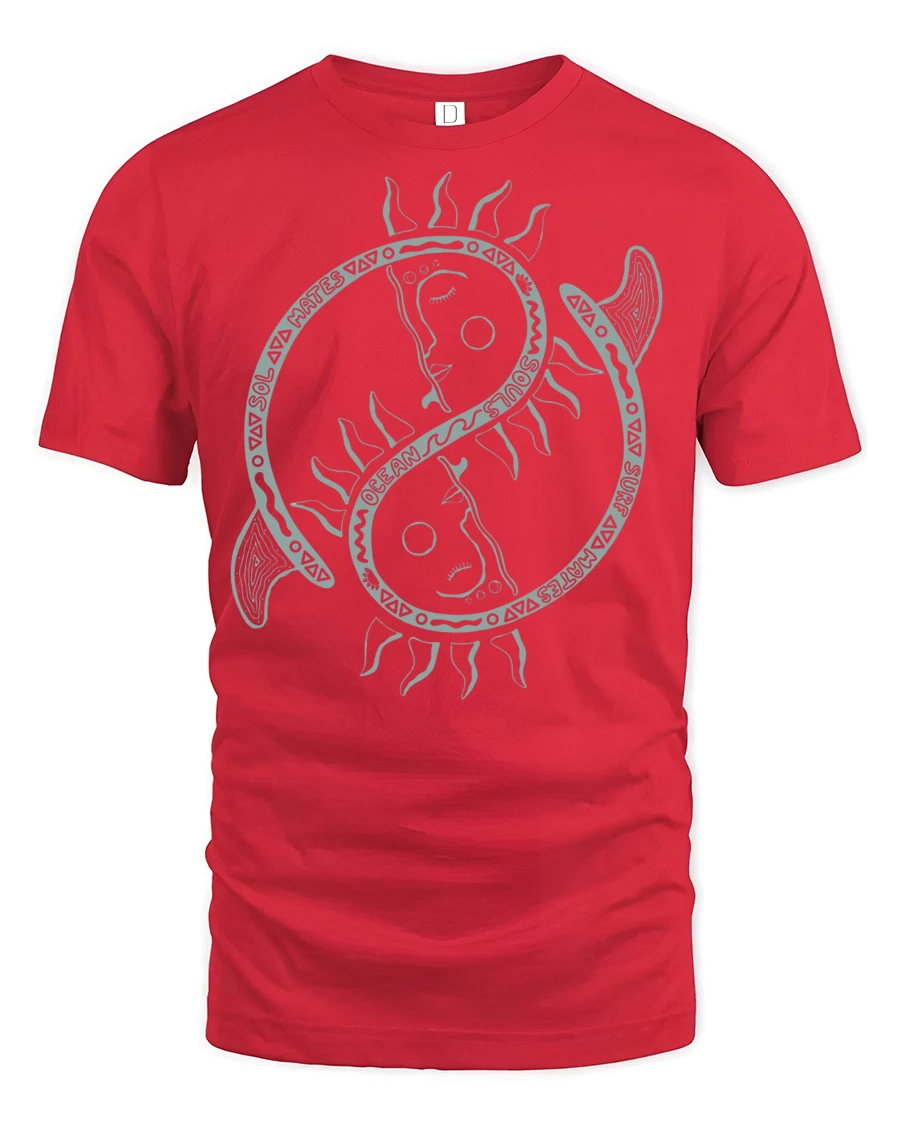 Ocean Sun Yin Yang Boho Spiritual Balance Art Tee Aesthetic Tshirt - red t-shirt on white background