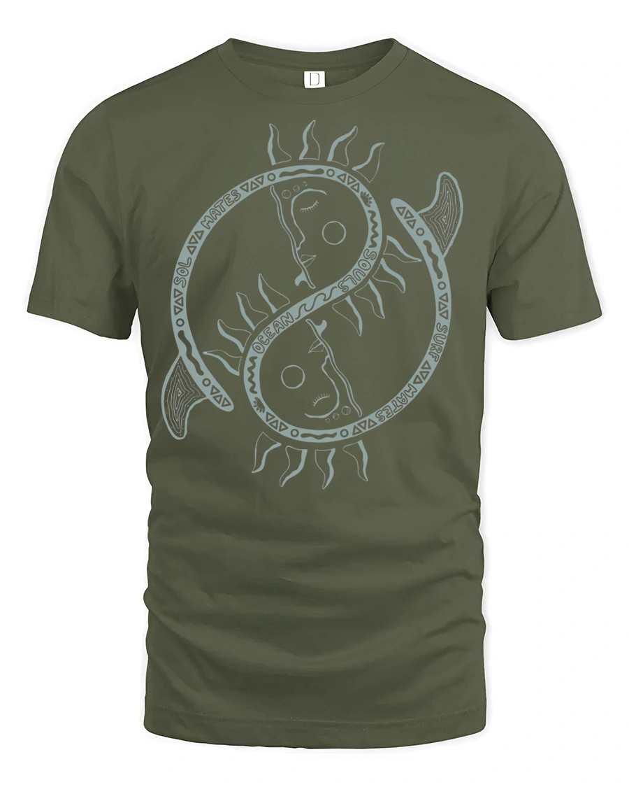 Ocean Sun Yin Yang Boho Spiritual Balance Art Tee Aesthetic Tshirt - military green t-shirt on white background