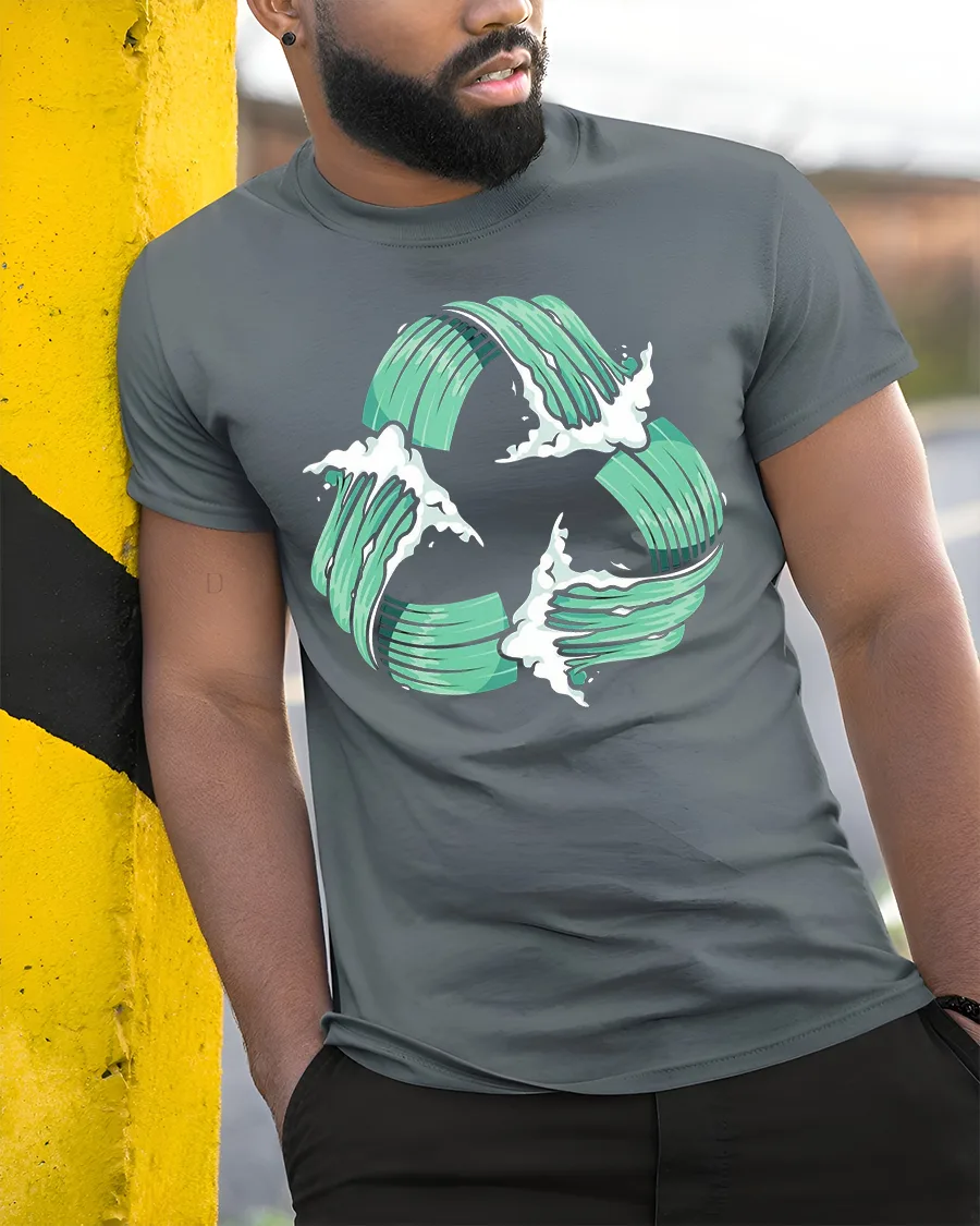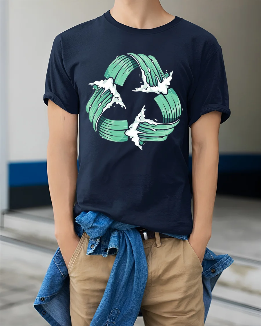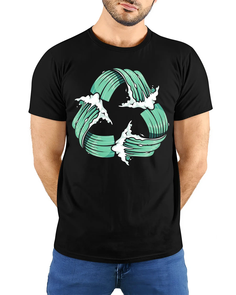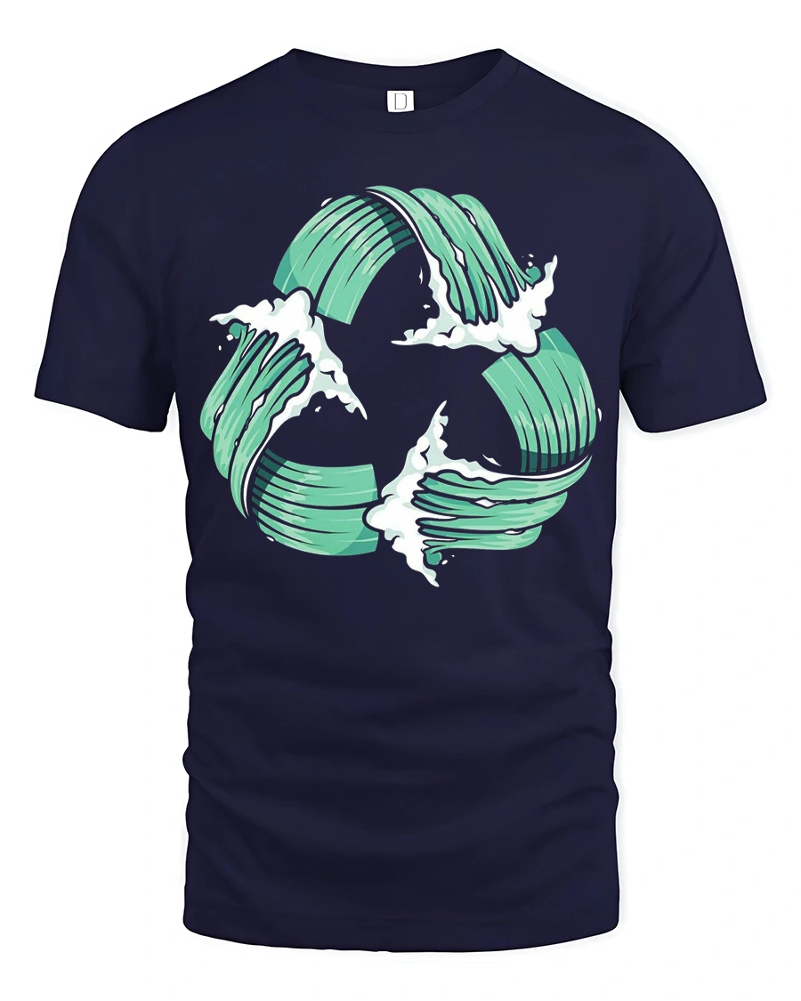 Ocean Wave Circle Symbol Surf Style Minimal Graphic Tee expresses the rhythmic motion of water through a visually balanced circular wave composition.