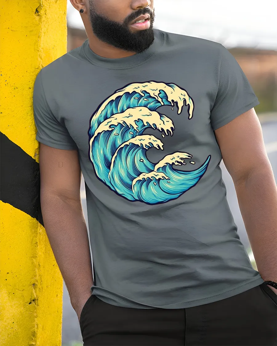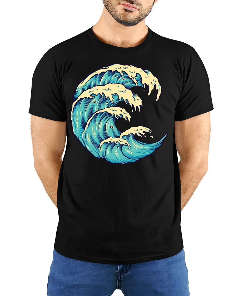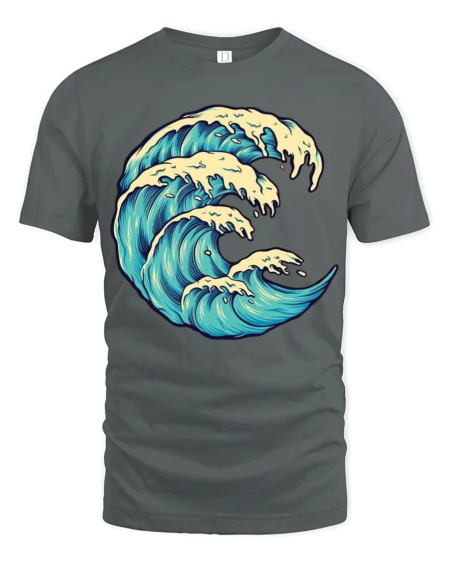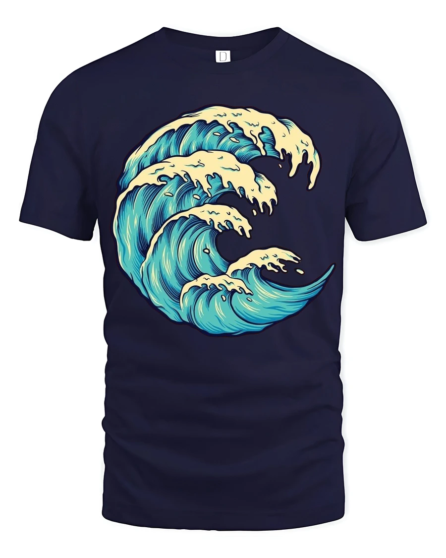 Ocean Wave Graphic Tee Artistic Sea Surf Style Tshirt showcases a dynamic illustration inspired by the beauty and motion of the ocean. The flowing wave design captures a sense of energy and calm at the same time, creating a visually appealing graphic that feels both artistic and timeless. This ocean inspired artwork reflects appreciation for nature and the powerful rhythm of water.