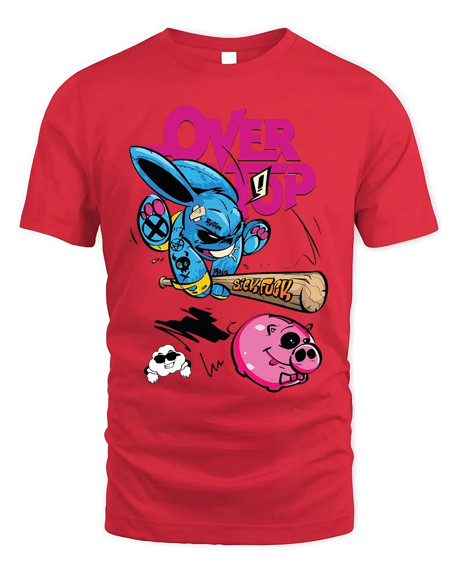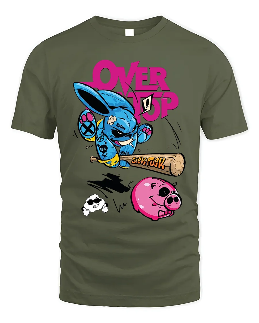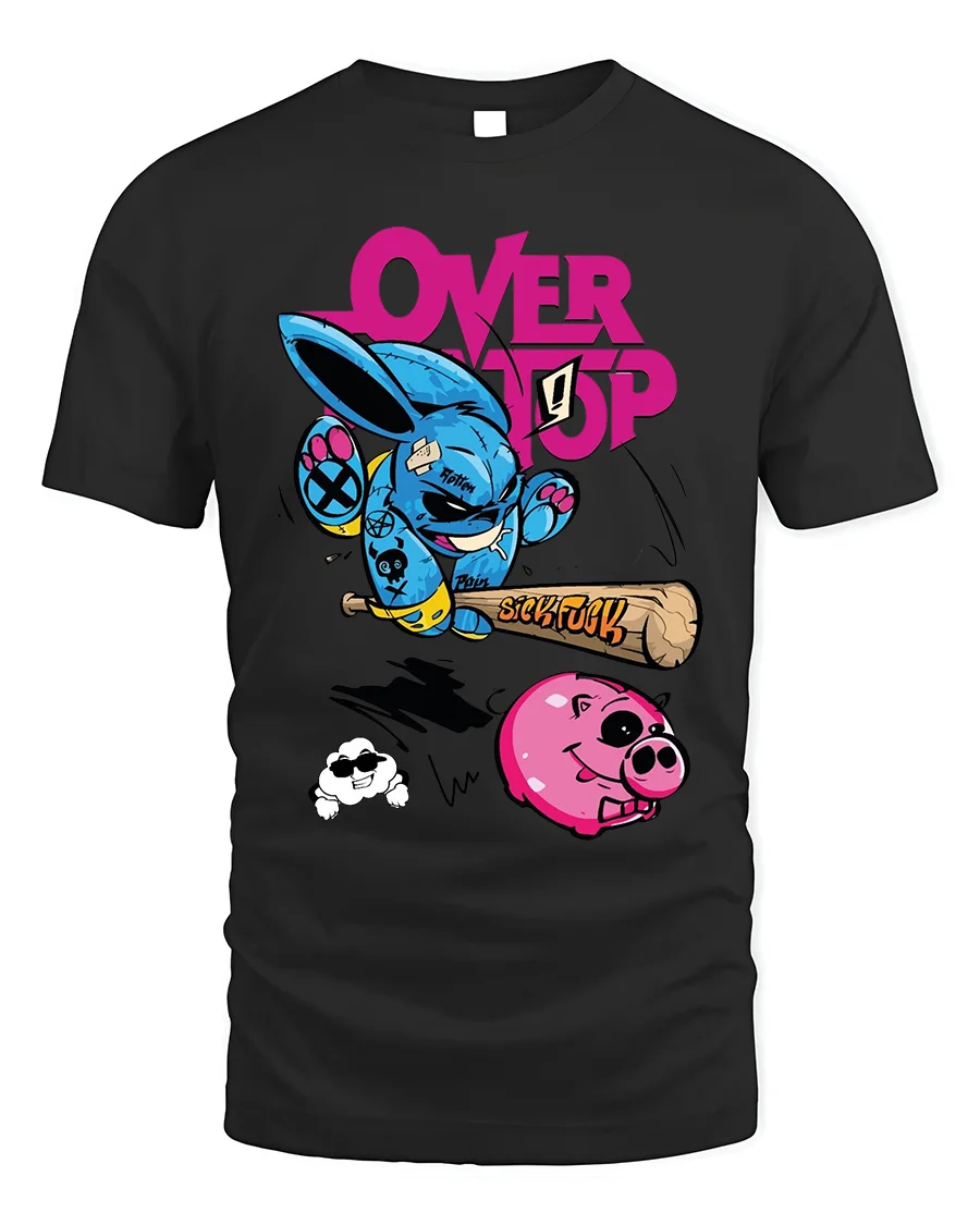 Add bold attitude to your wardrobe with the Over the Top Bunny Graphic T-Shirt Bold Cartoon Streetwear Tee, featuring a fierce blue bunny character swinging a bat in a dynamic, action-packed design. With its striking colors, expressive cartoon style, and graffiti-inspired lettering, this tee delivers a powerful visual punch perfect for anyone who loves edgy streetwear and unique character art.