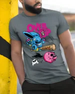 Made from soft, breathable fabric, this t-shirt ensures comfortable all-day wear while maintaining a crisp, high-quality print. The vivid blue, pink, and yellow accents stand out sharply against the dark background, highlighting every detail—from the bunny’s intense expression to the playful supporting characters. Whether you’re hitting the streets, hanging out with friends, or simply showcasing your love for bold cartoon designs, this tee brings personality and style to any outfit.