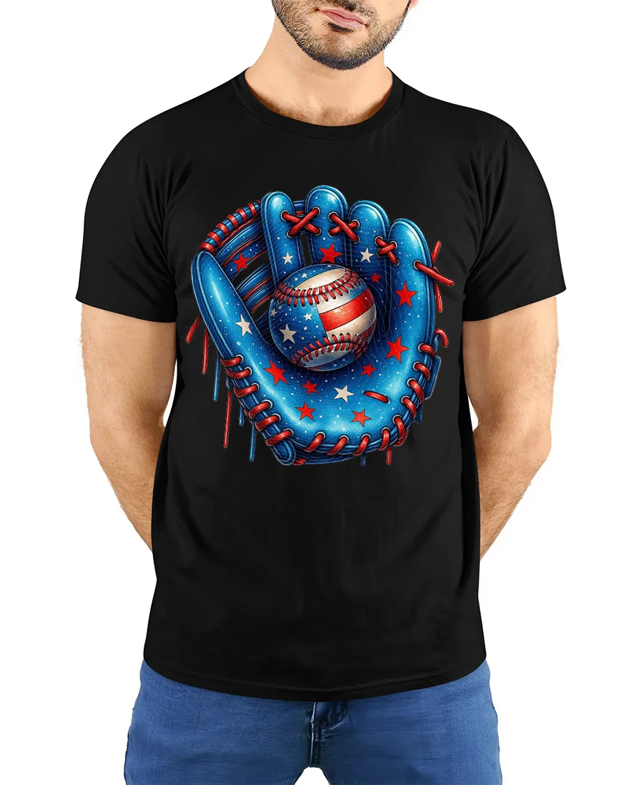 Celebrate America’s favorite pastime in bold style with the Patriotic Baseball Glove and Ball Graphic T-Shirt. This striking design features a classic baseball glove holding a ball decorated in red, white, and blue stars and stripes, symbolizing both the love of the game and American pride. Perfect for baseball fans, players, and anyone who enjoys patriotic sportswear, this tee is a must-have addition to your wardrobe.