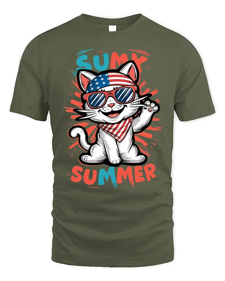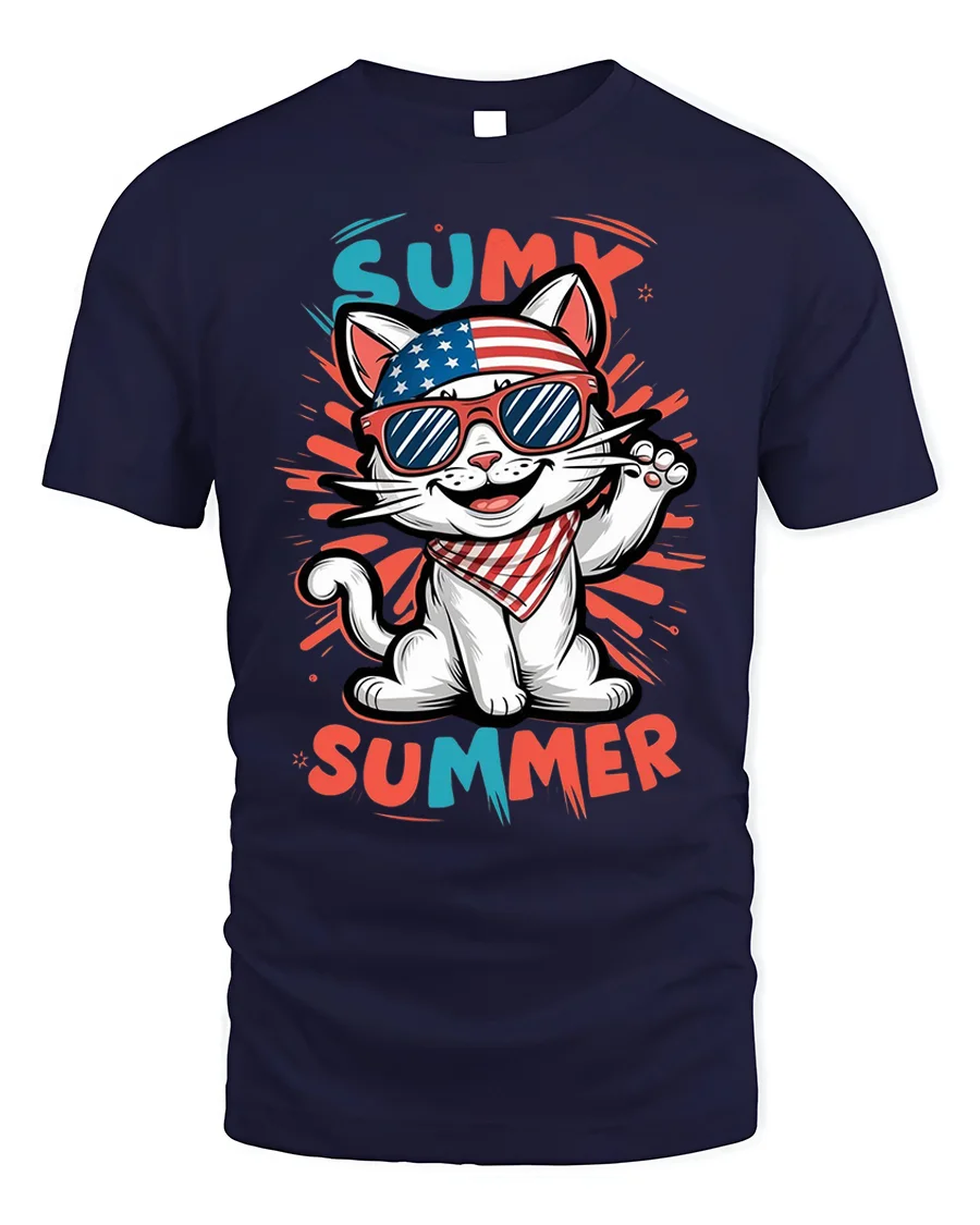 Crafted from comfortable, breathable fabric, this t-shirt is ideal for warm days, beach trips, backyard barbecues, or fireworks celebrations. The fun cat graphic and red, white, and blue accents make it a standout piece that pairs effortlessly with shorts, jeans, or casual wear. Whether worn for Independence Day, Memorial Day, or any summer outing, it brings a cheerful, festive vibe to your wardrobe.