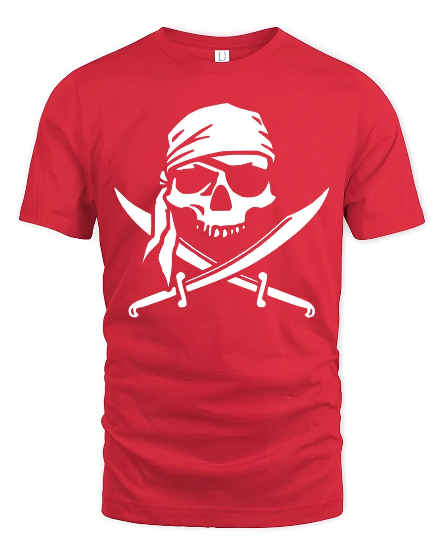 The striking skull wearing a bandana combined with crossed swords creates a strong visual that captures classic pirate attitude.