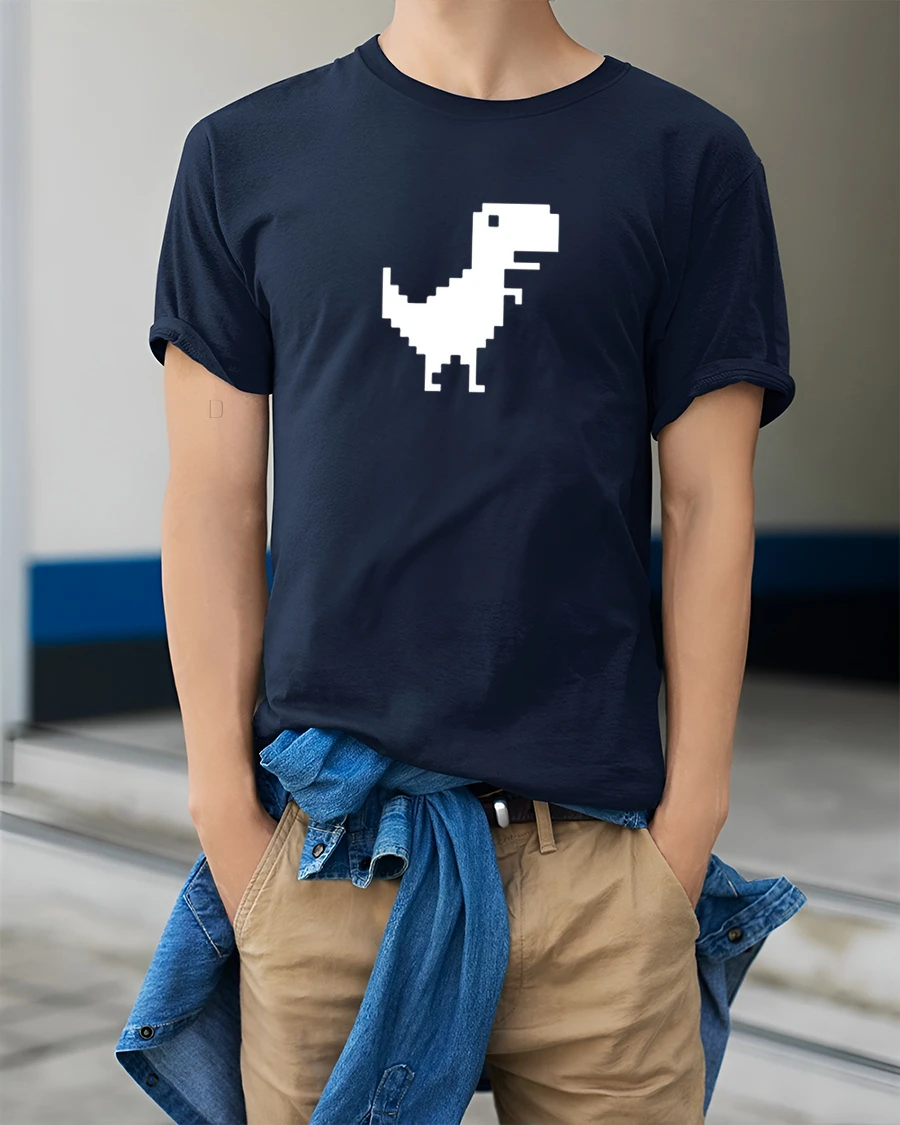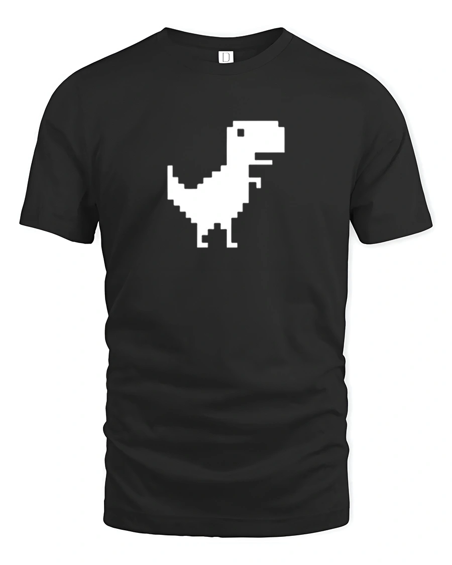Pixel Dinosaur Offline Chrome Dino Funny Retro Gaming T Shirt brings nostalgic gaming vibes into modern everyday style.